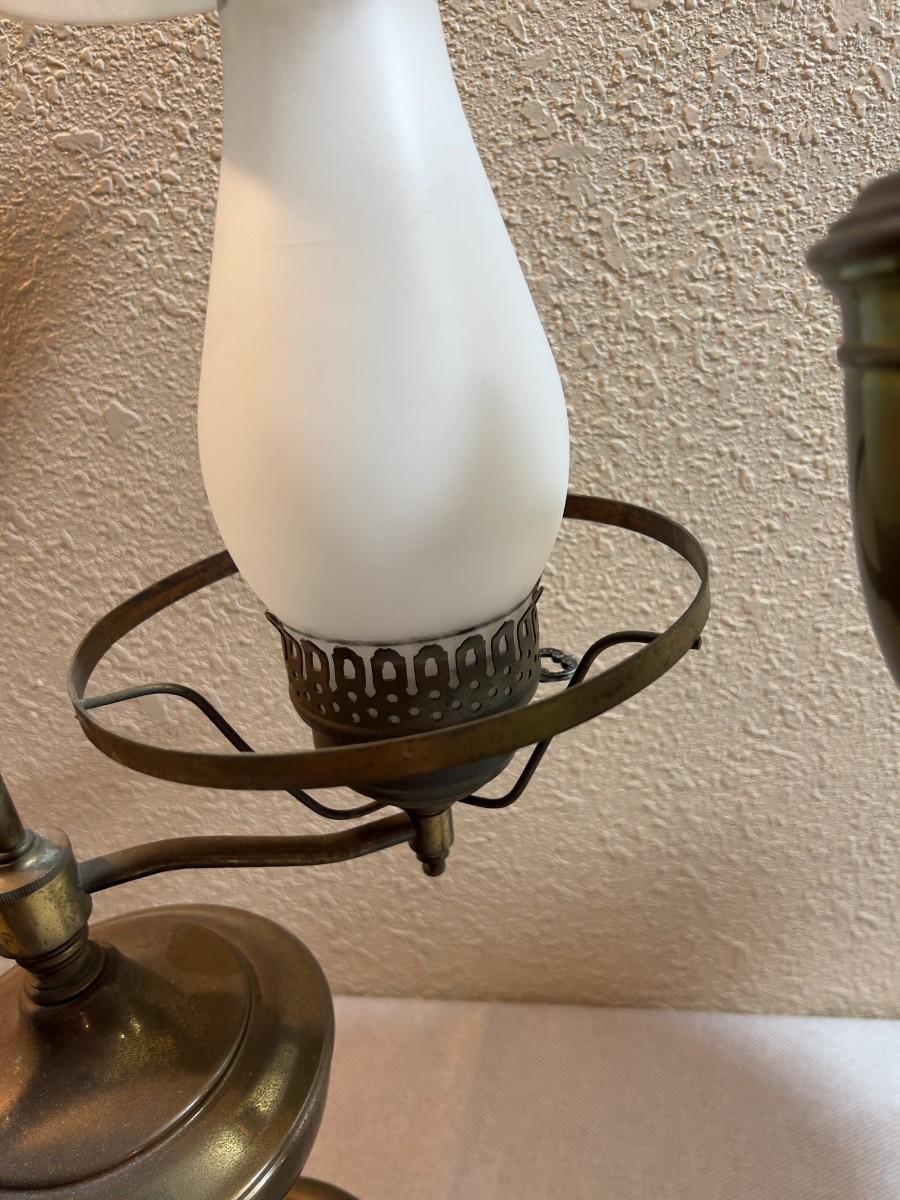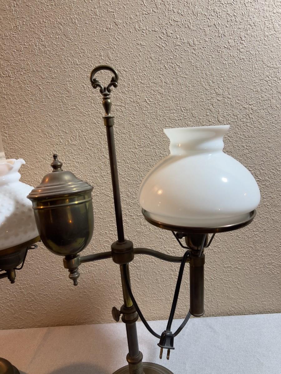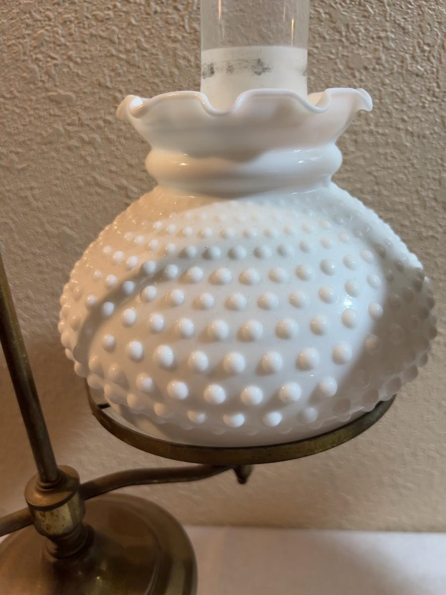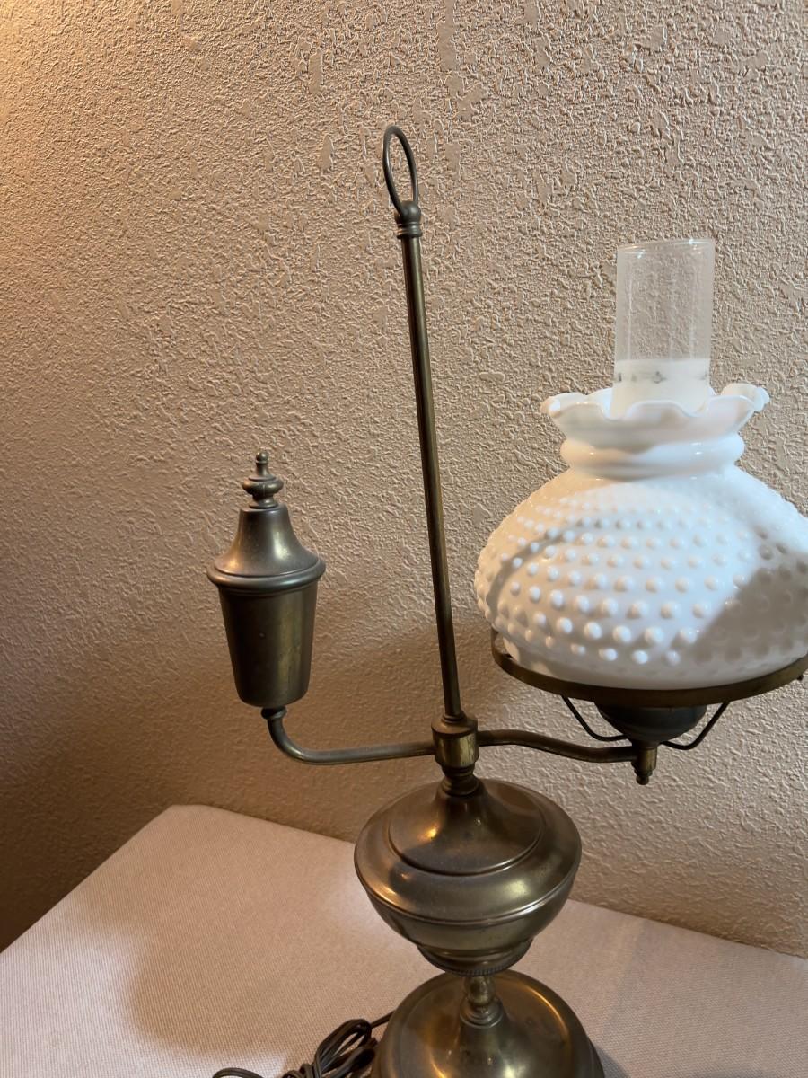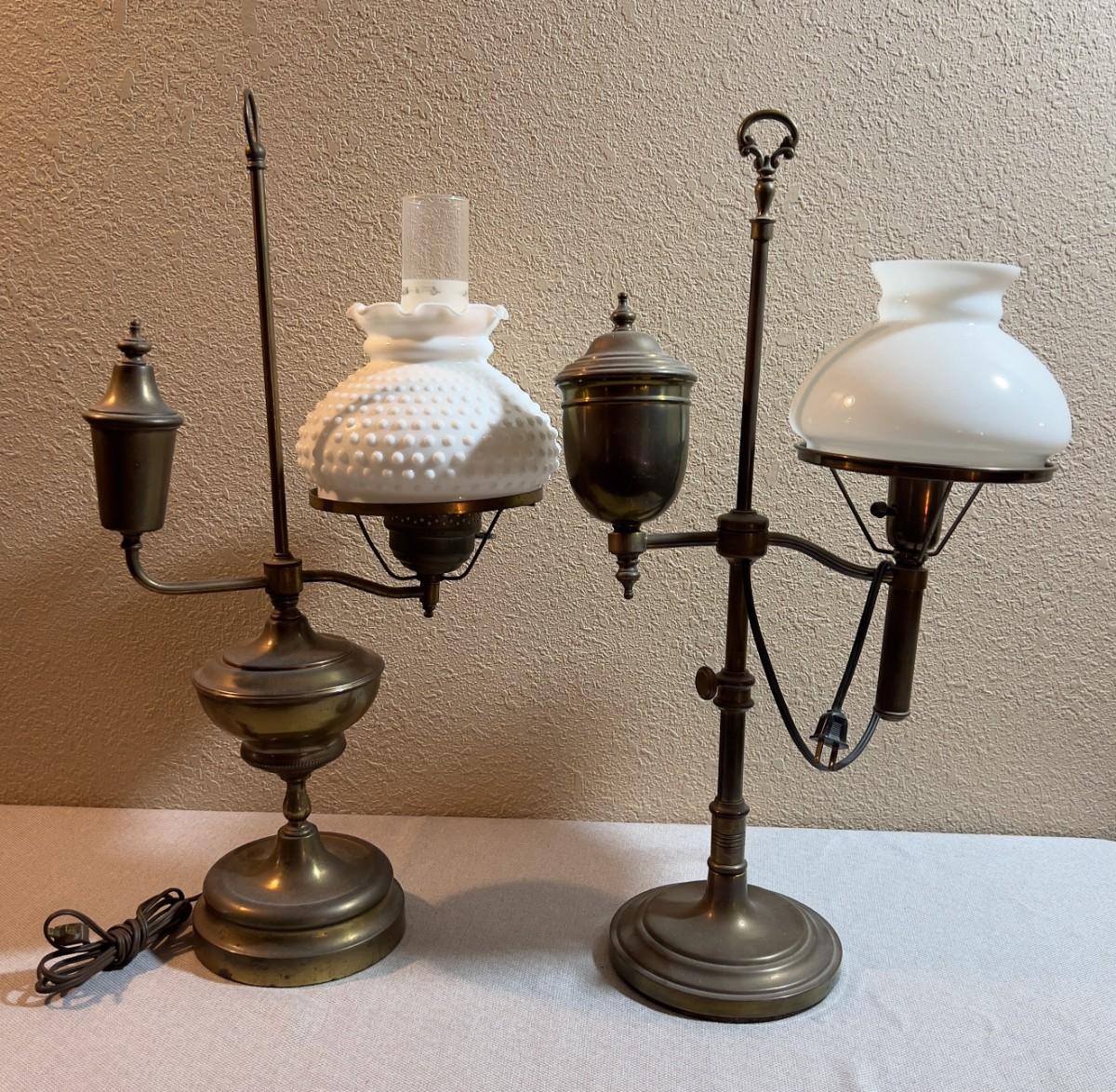 One has a Hobnail and both OLD with Milk Glass Shades. Working Condition.