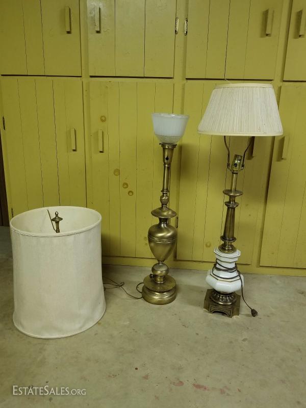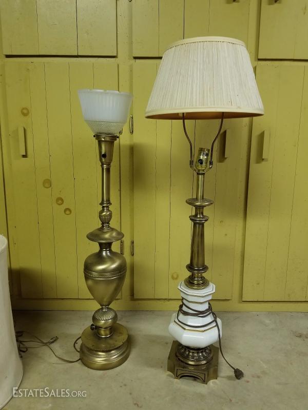 2 Brushed Brass Lamps, 1 has a porcelain base