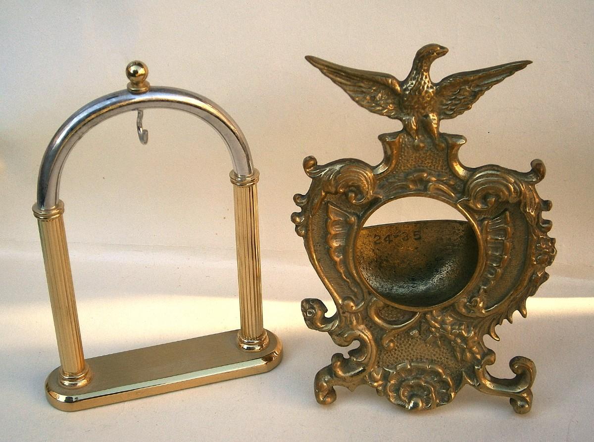 2 Brass Pocket Watch Holders, 5 1/2 in. tall.