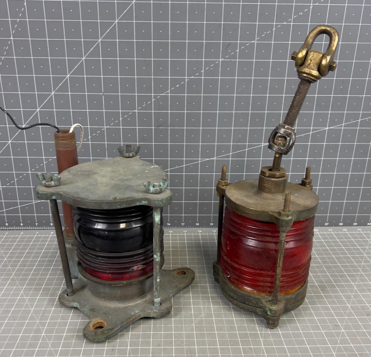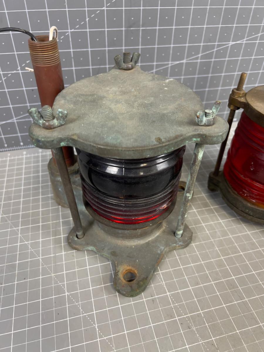 2 Brass Ship Lights with Red Lens