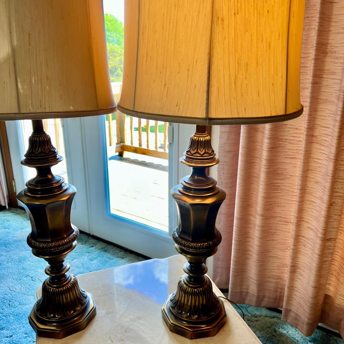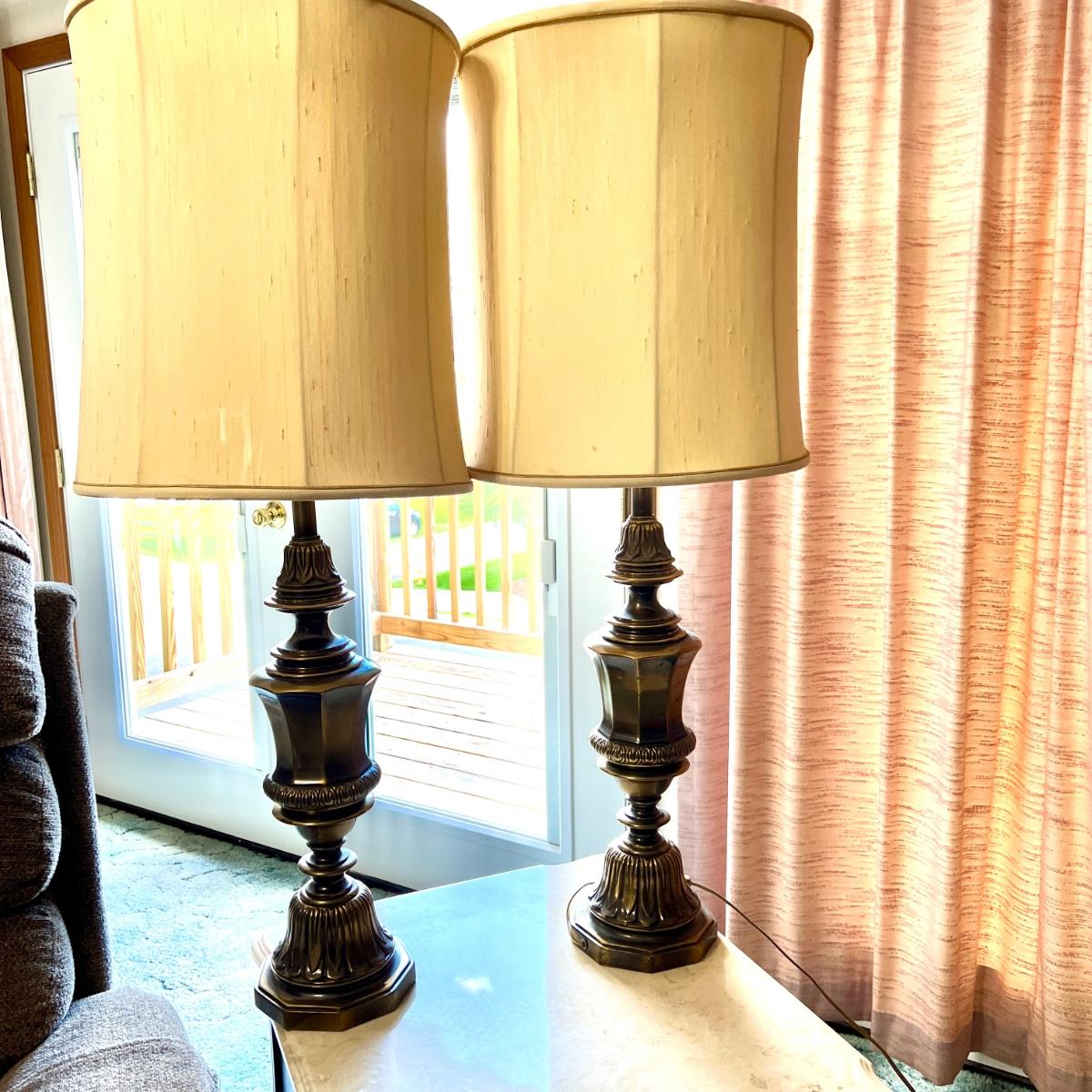 Pair Solid Brass 36 Inch Table Lamps