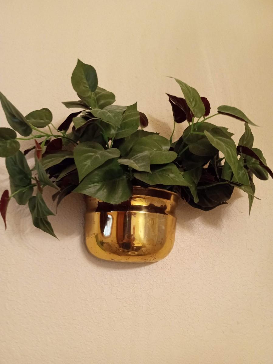 2 BRASS WALL POCKETS AND A SMALL PICTURE