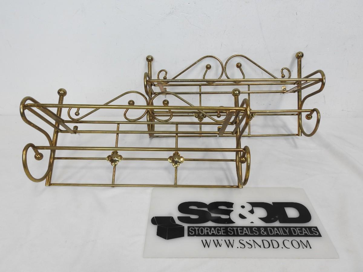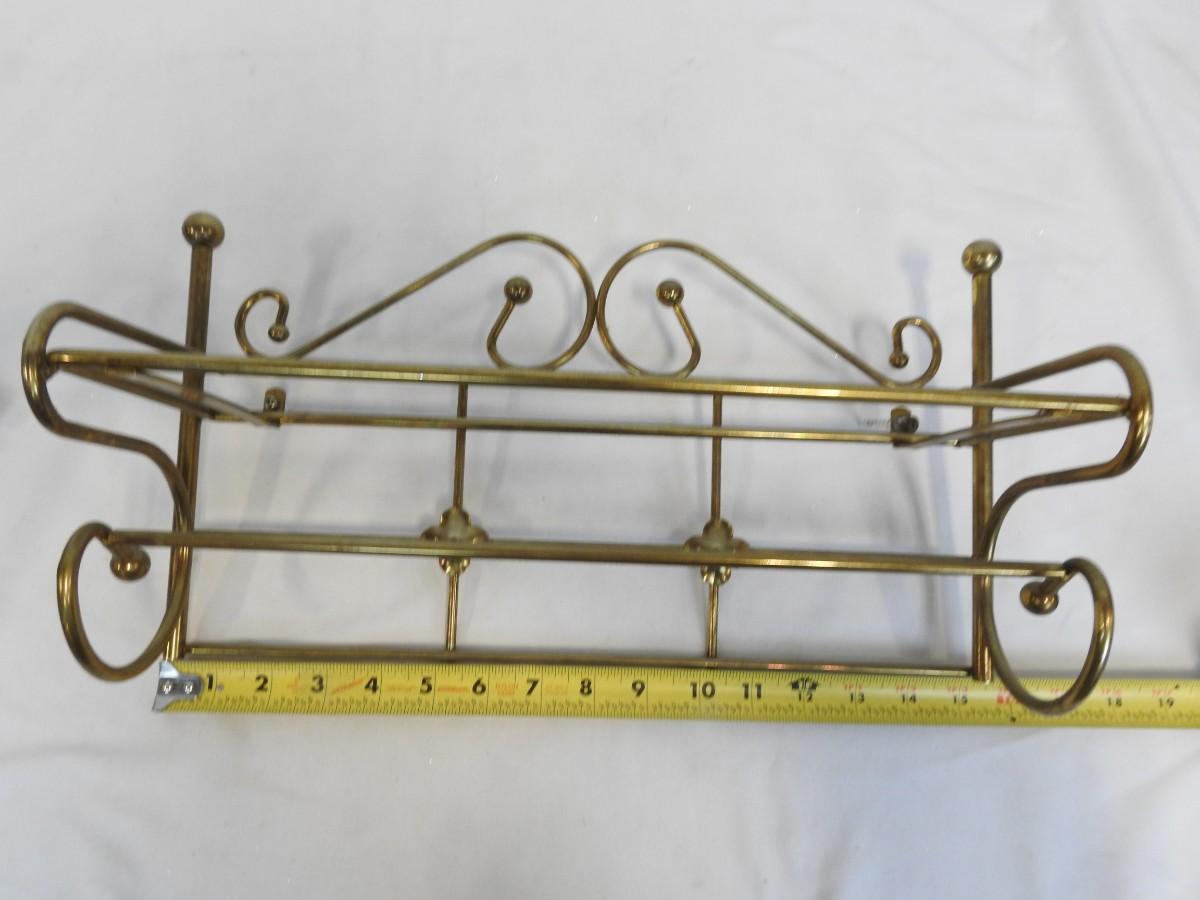 2 Brass Wall Shelves w/Towel Rod, 15 1/2in x 8 1/2in x 5 1/2in, Heavy Duty