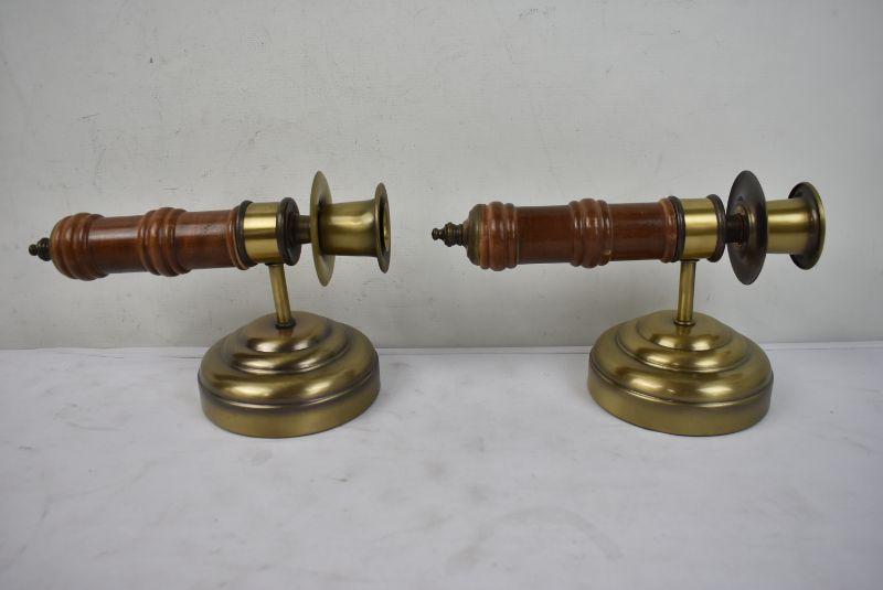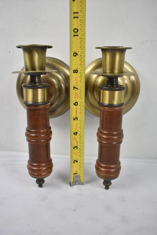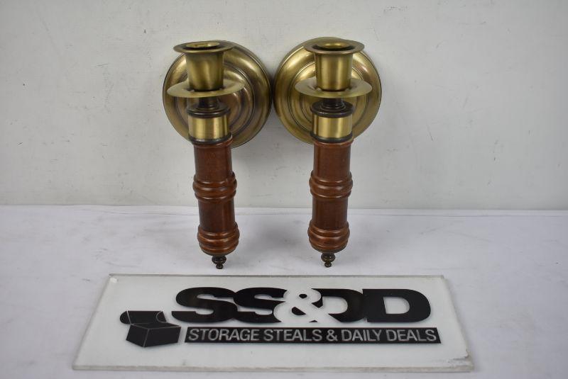 2 Brass & Wood Wall Sconce Candle Holders - Vintage