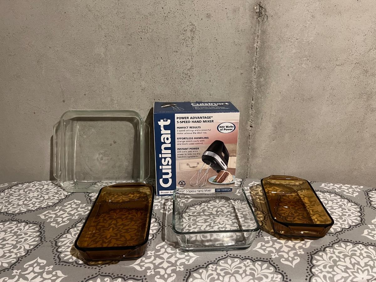 2 BREAD PANS, CUISINART MIXER, AND 2 BAKING PANS.