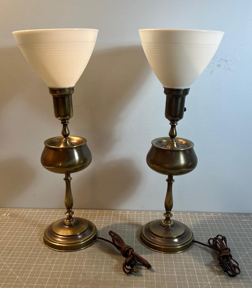 2 Bronze Color Metal Table Lamps