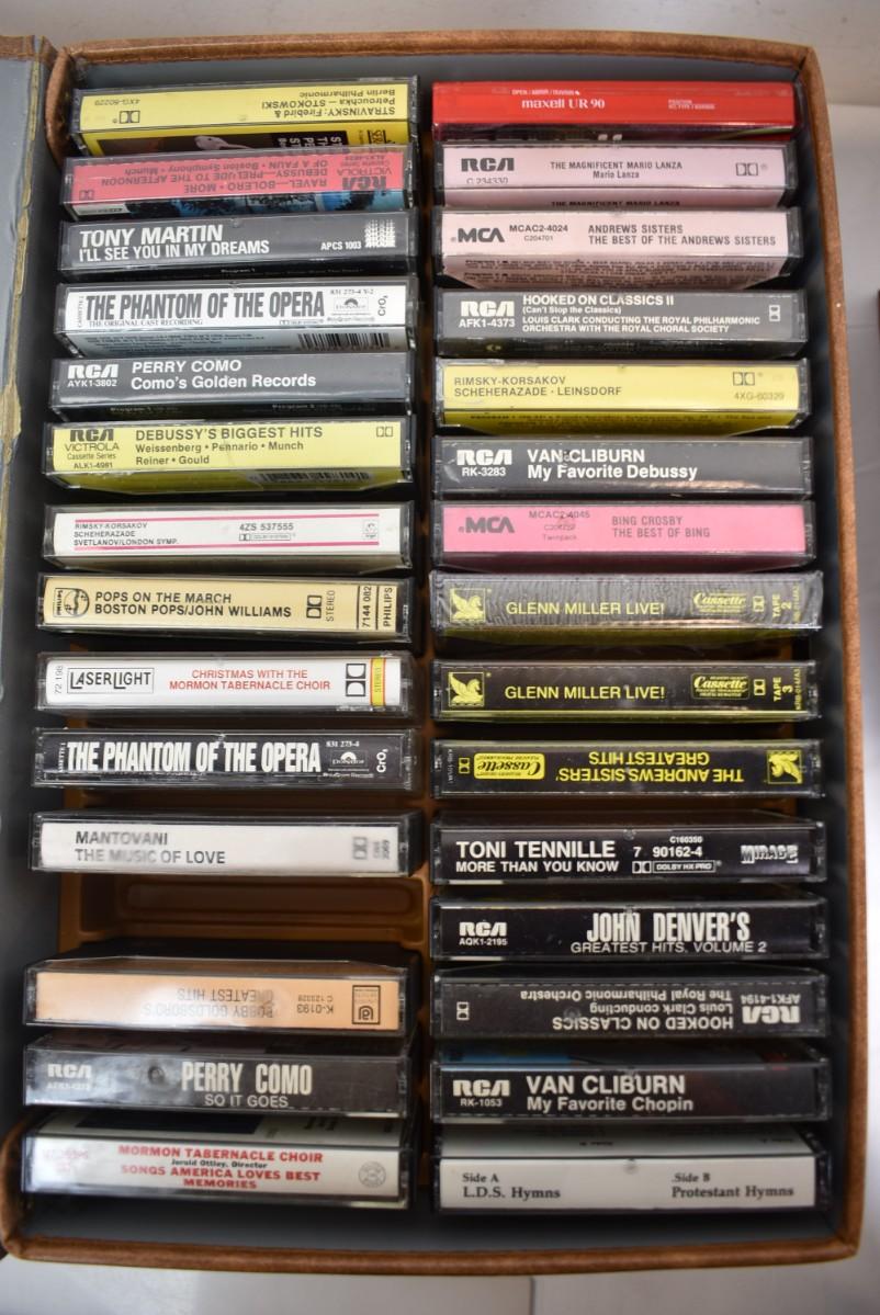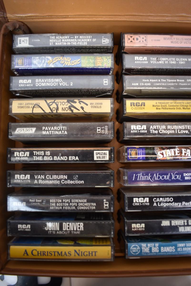 2 Brown Cases of Assorted Cassettes, Classical Music, Broadway, Jazz
