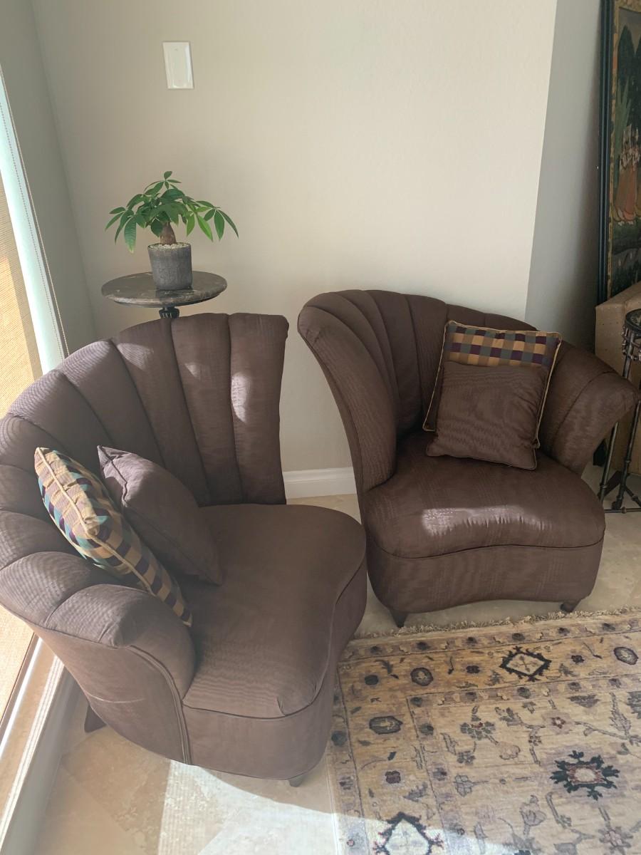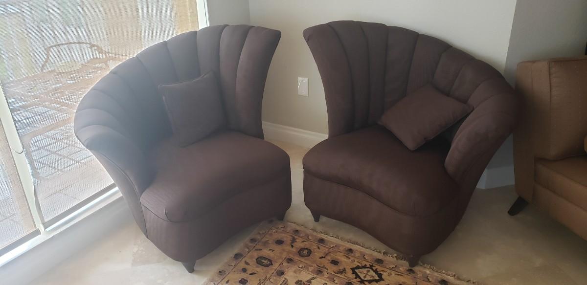 2 Art Deco Silk Purple Chairs, Right And Left, Made In Italy includes Pillows