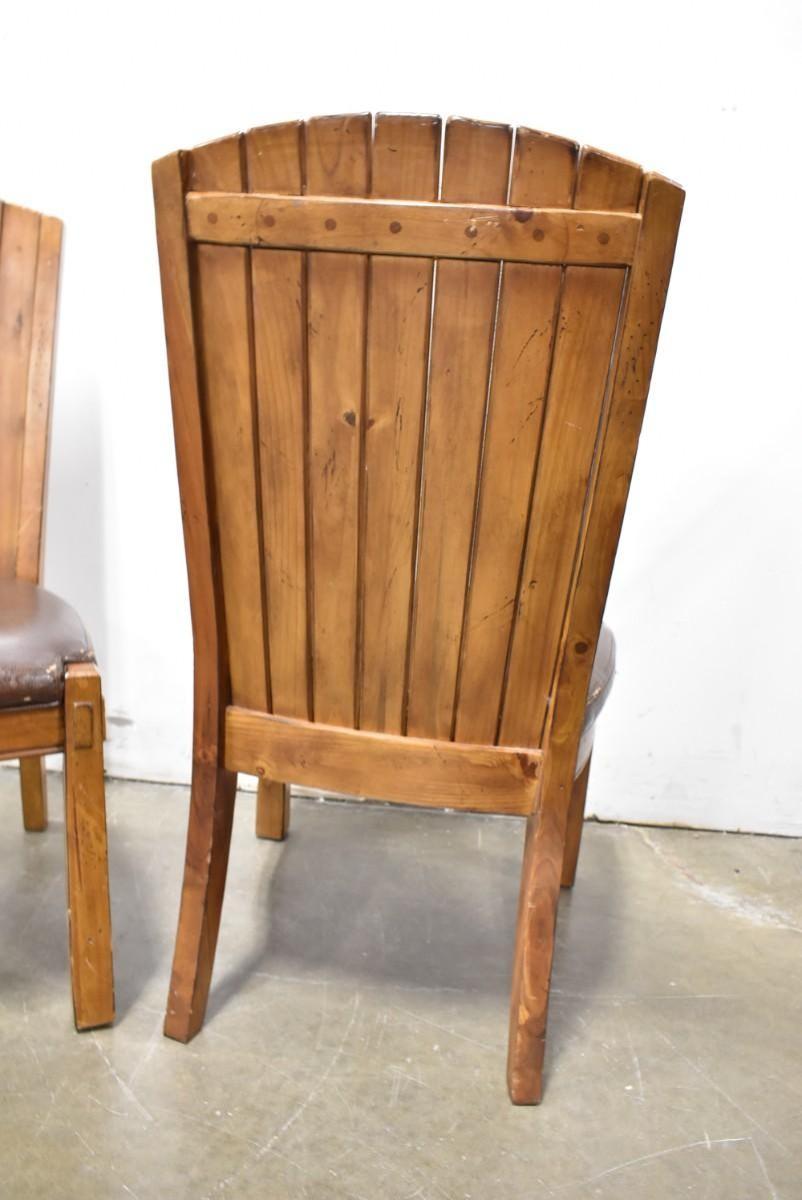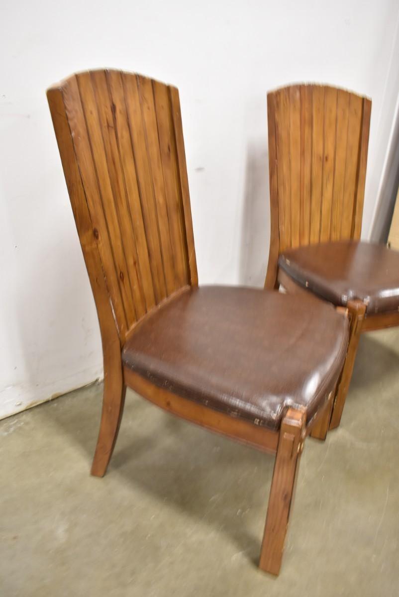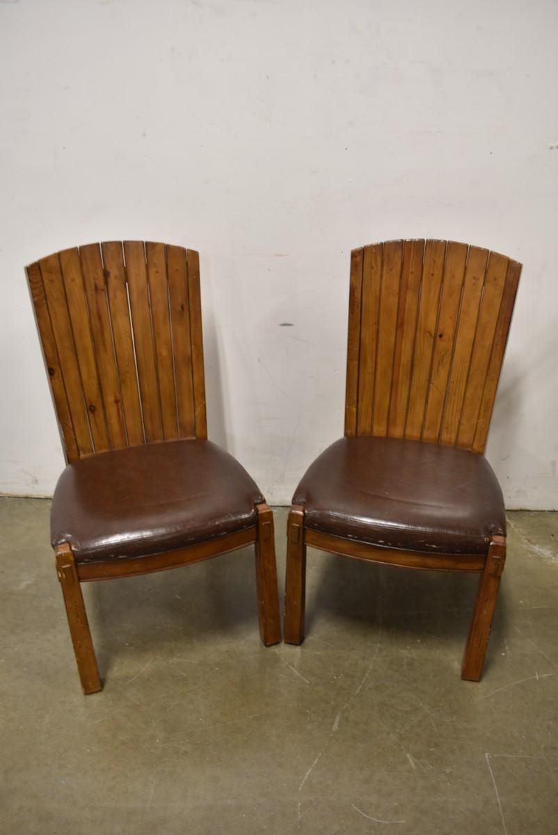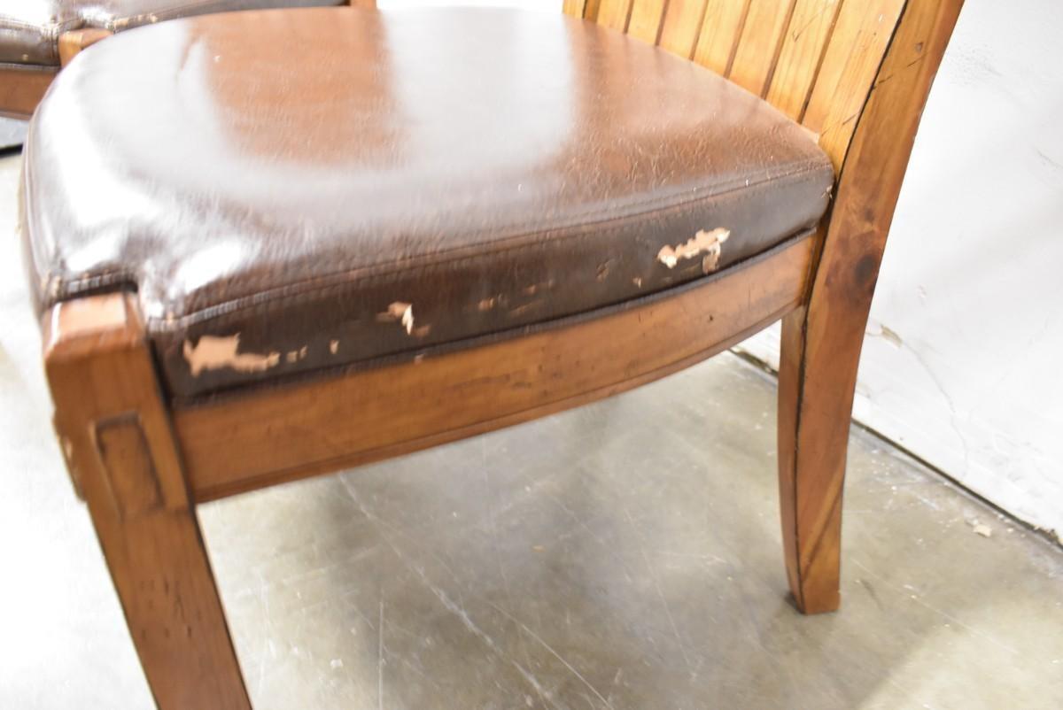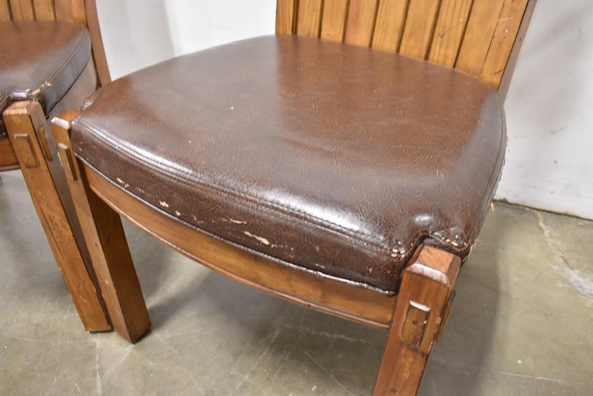 2 Brown Wooden Side Chairs with Brown Vinyl Cushioned Seats