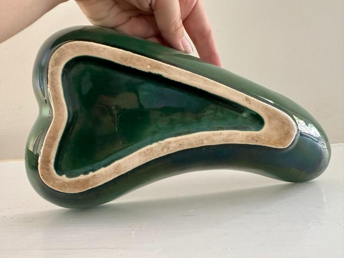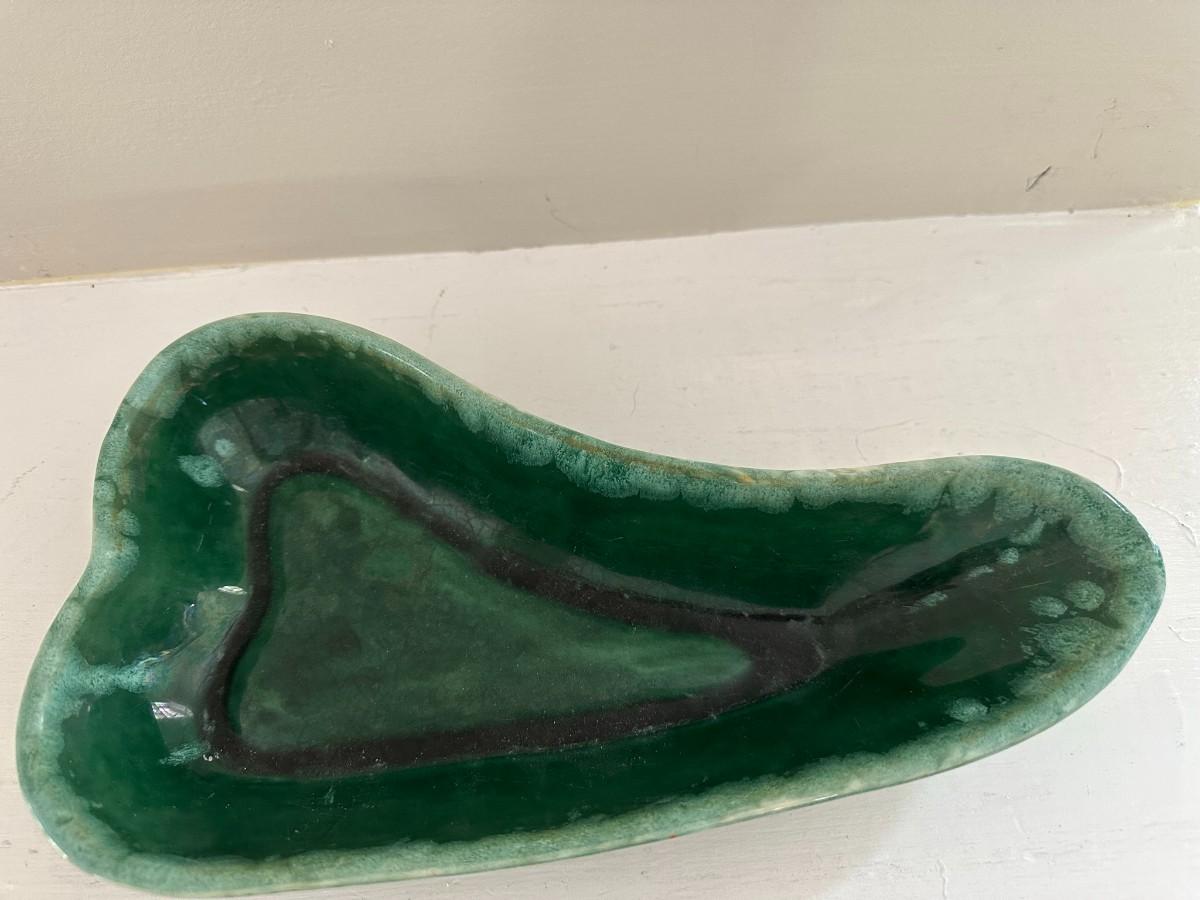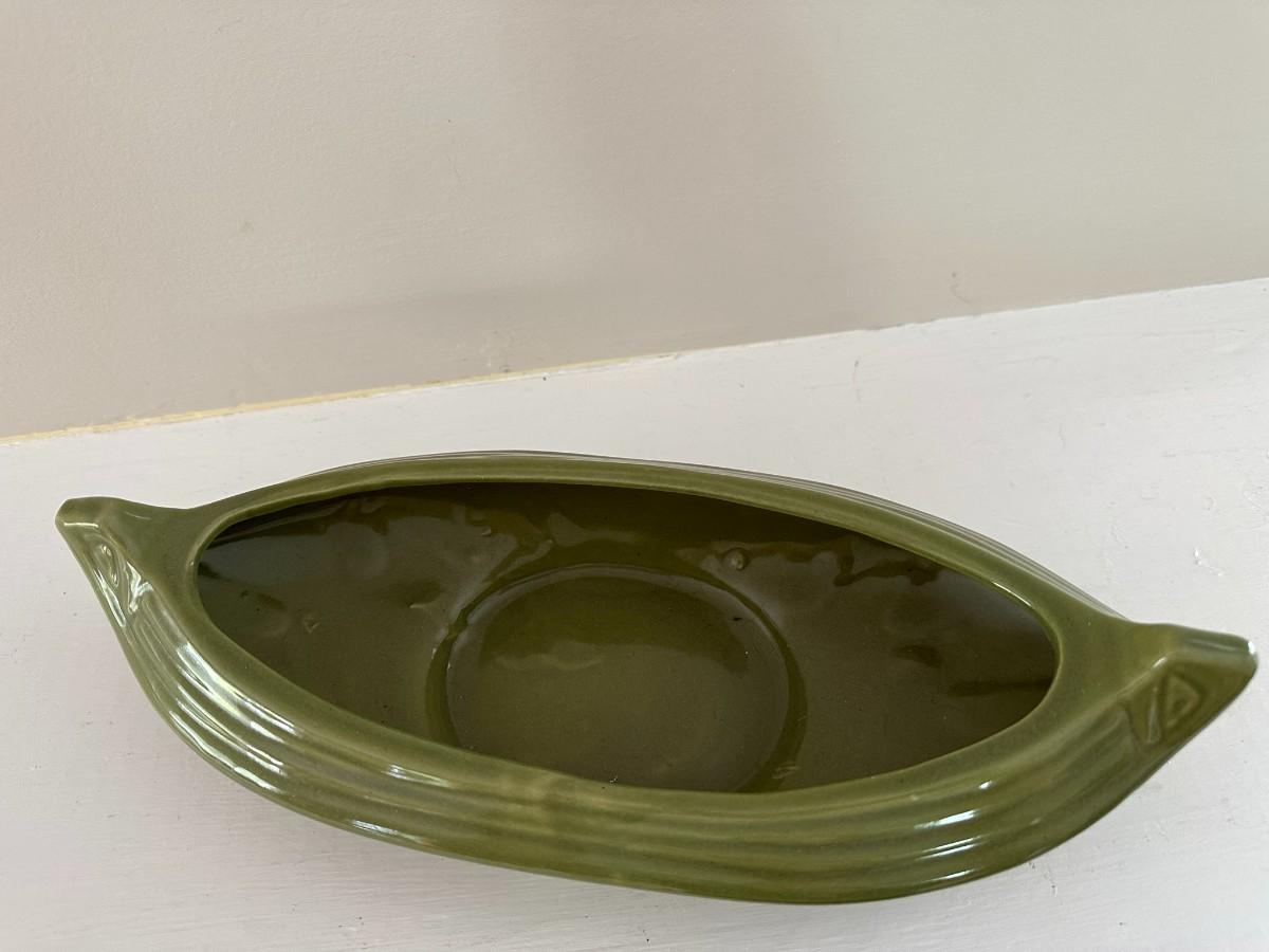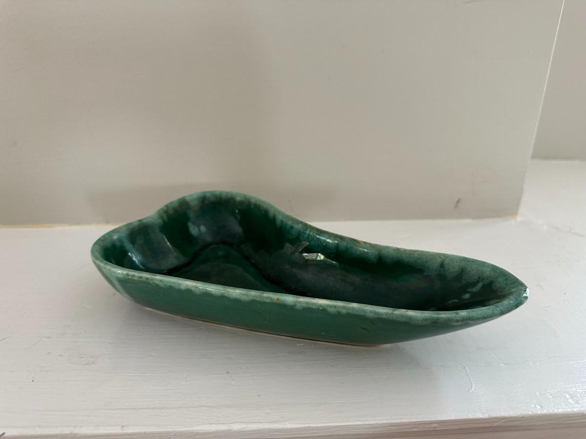 11"w Lt Green Brush USA 243 Pottery, 11.5" Green Brush USA 242 Pottery. 10"w Green Dish, unmarked
