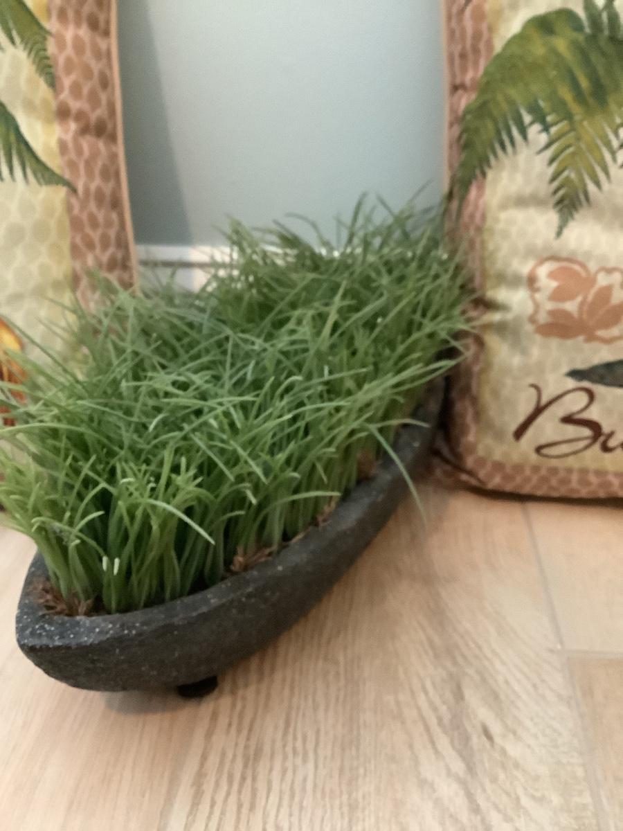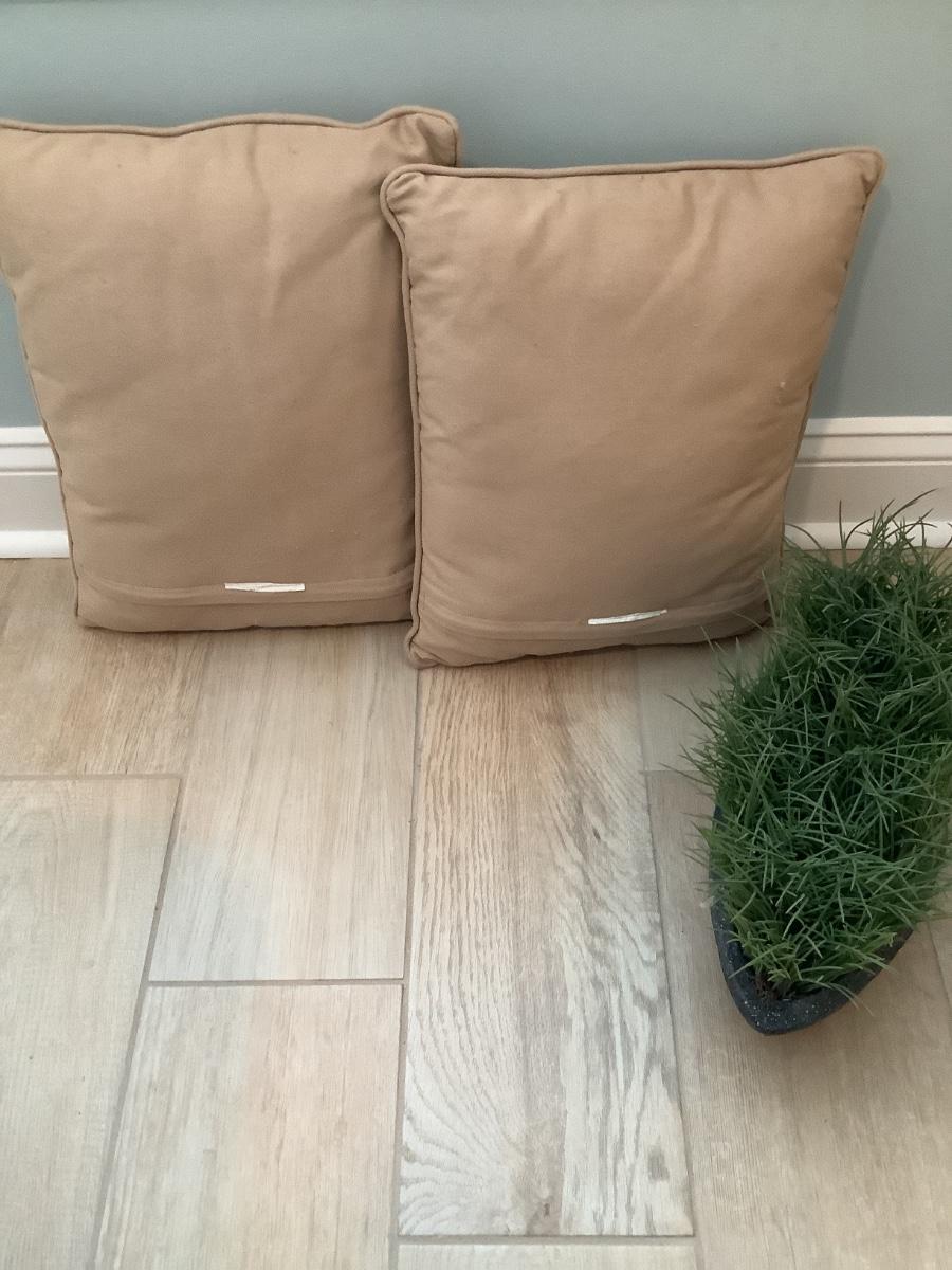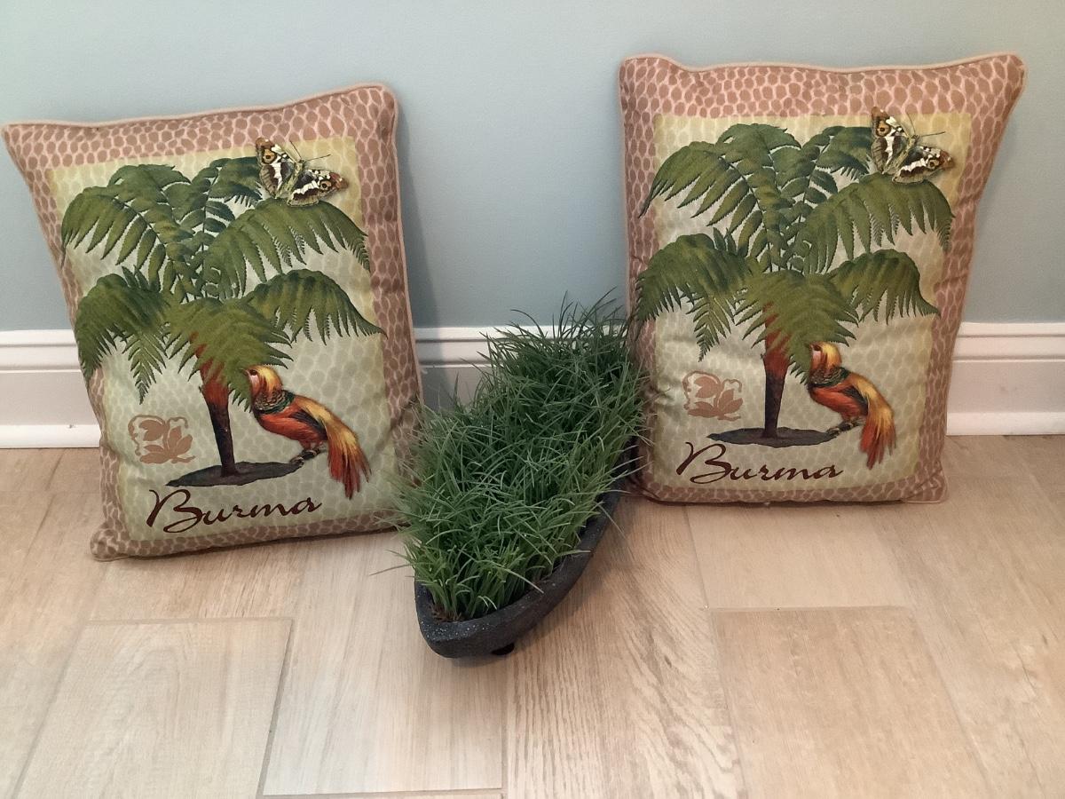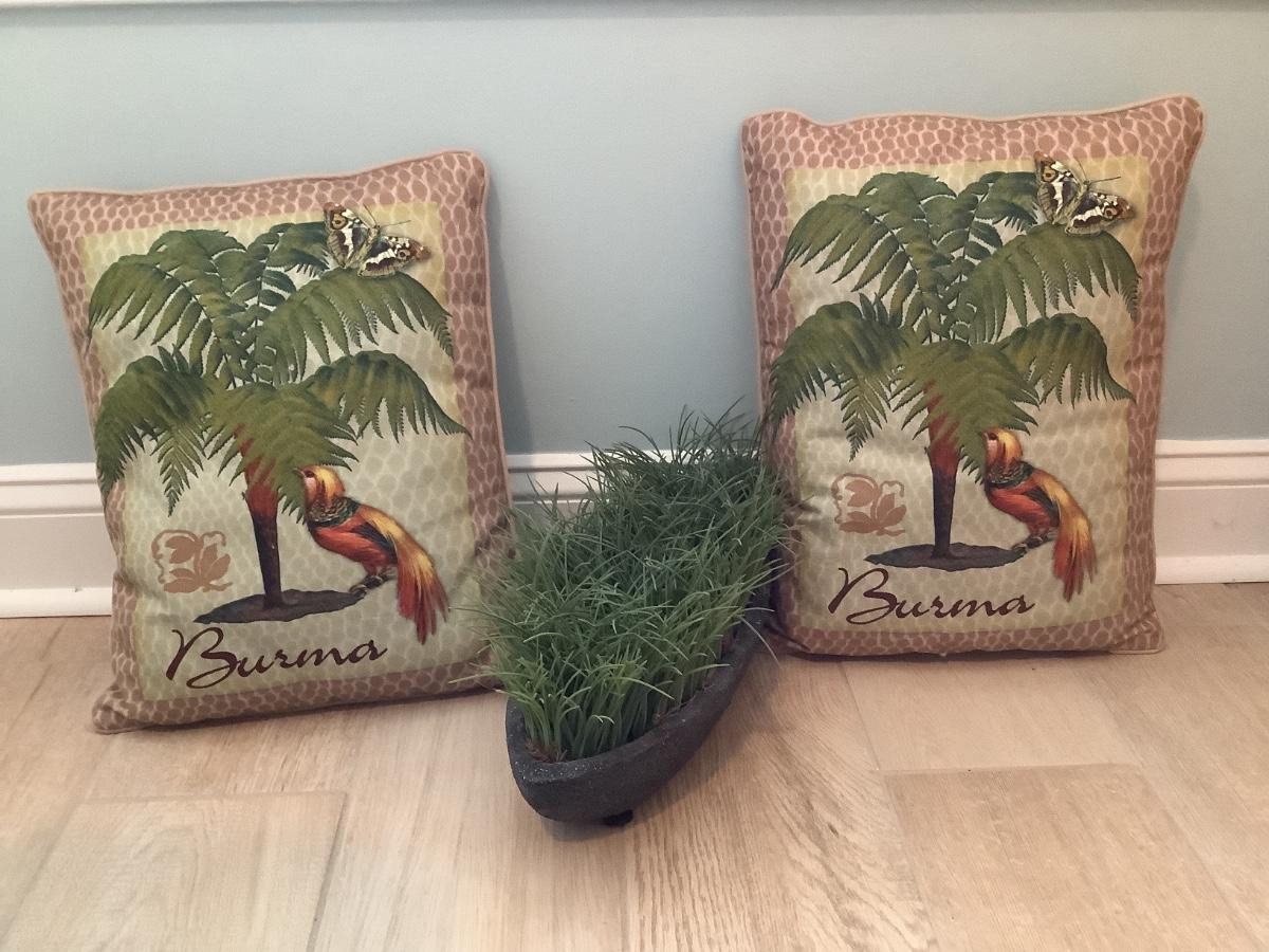 2 Burma pillows and faux plant