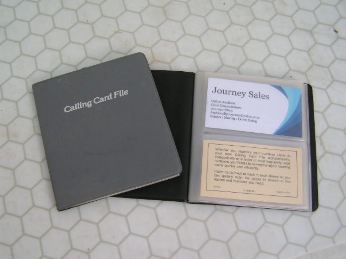 2 business card folders, 14 pages each, 4 cards back to back each page, 56 cards total in each