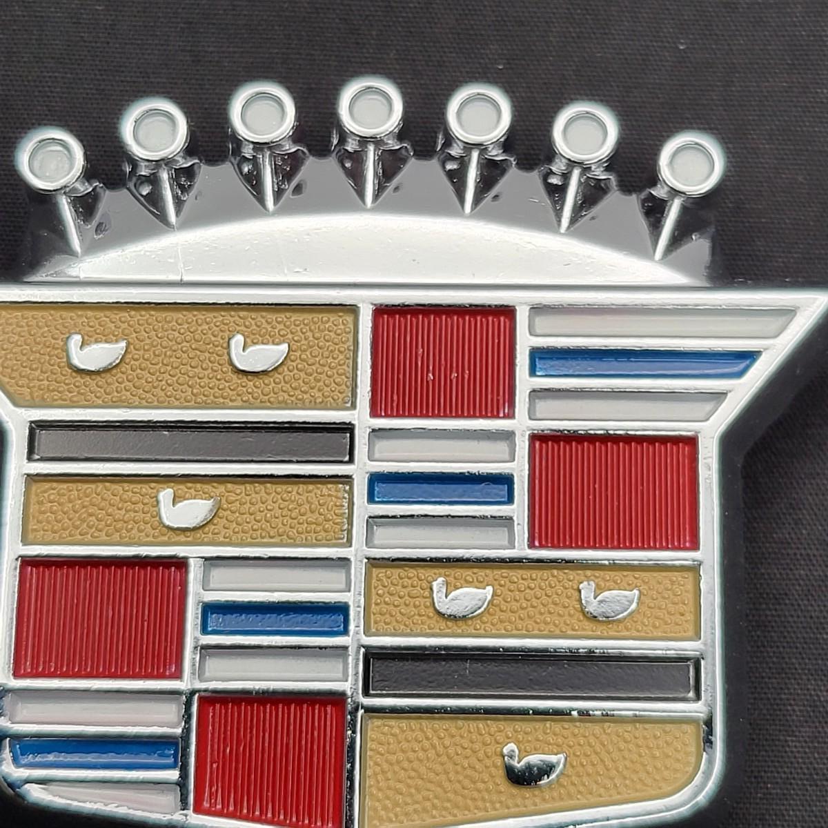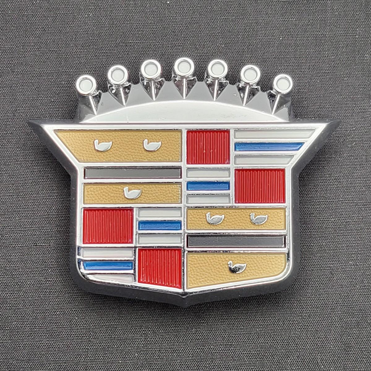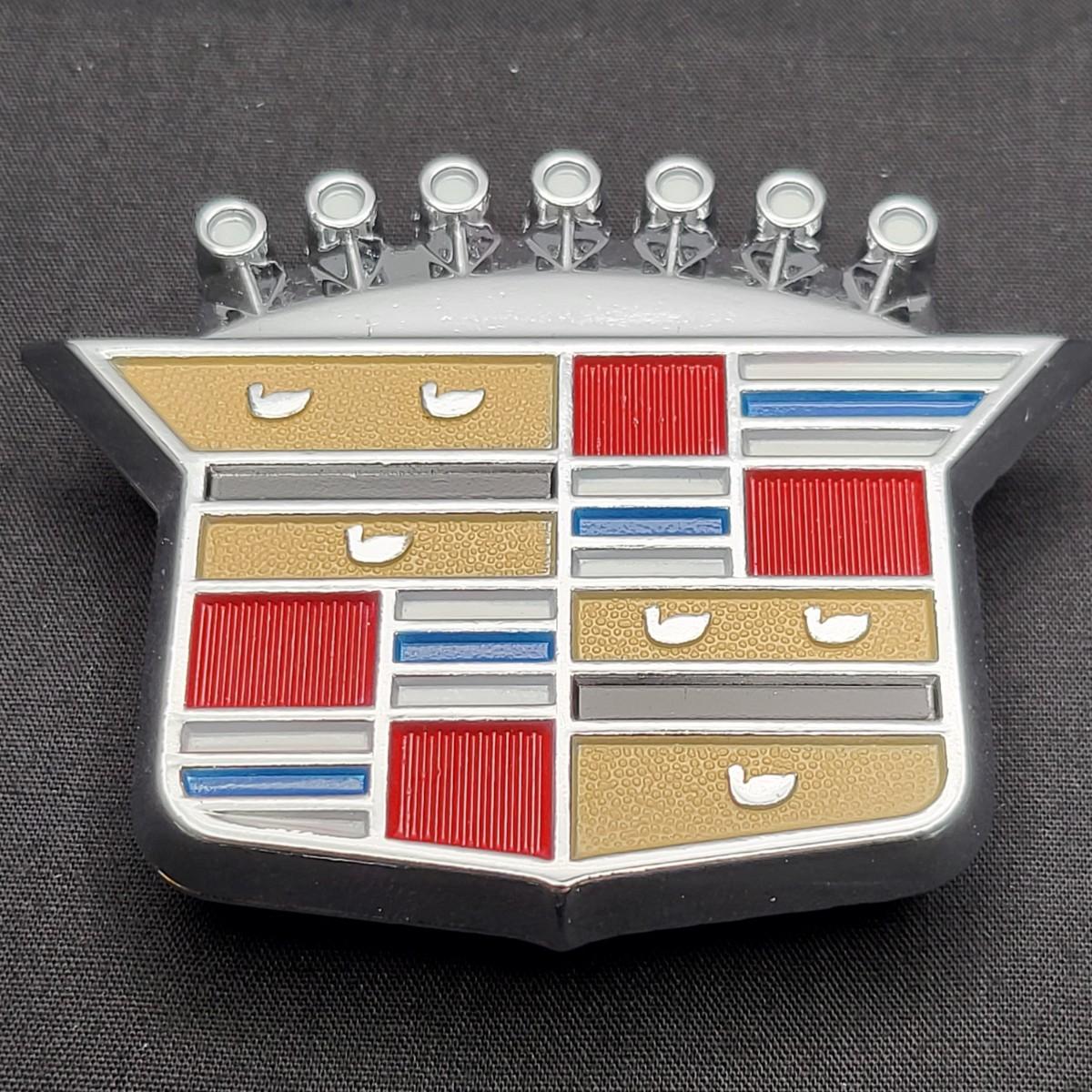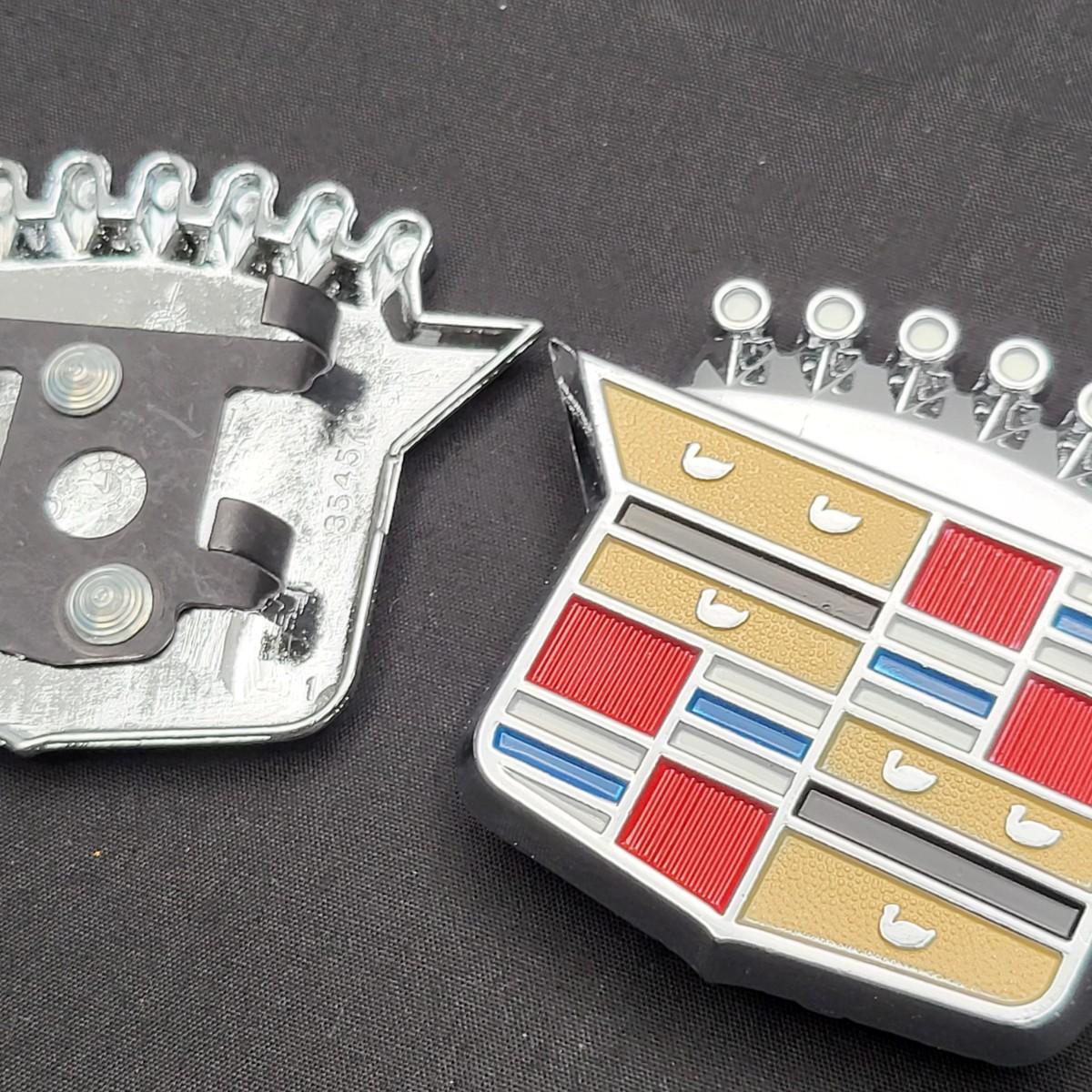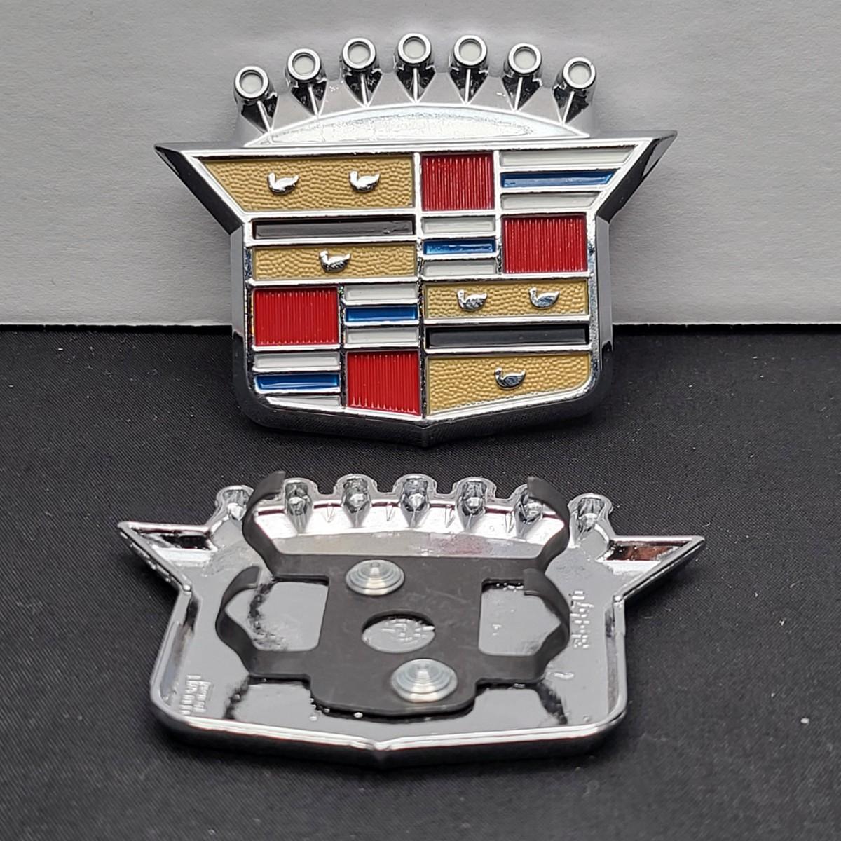 A pair of wheel hub cap clip emblems for Cadillac. Number 354570.