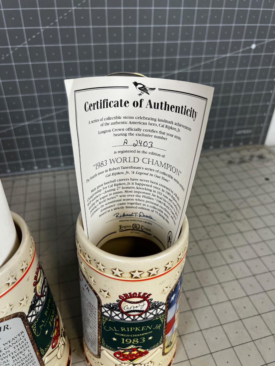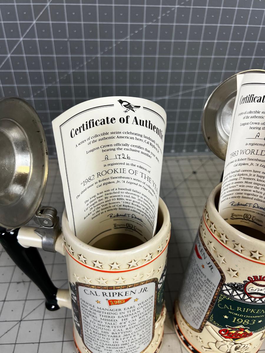 2 Cal Ripken, Orioles Beer Mugs with COA