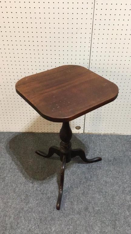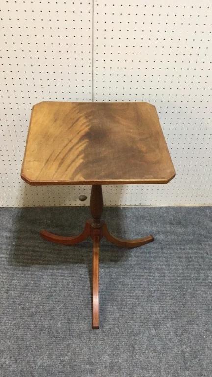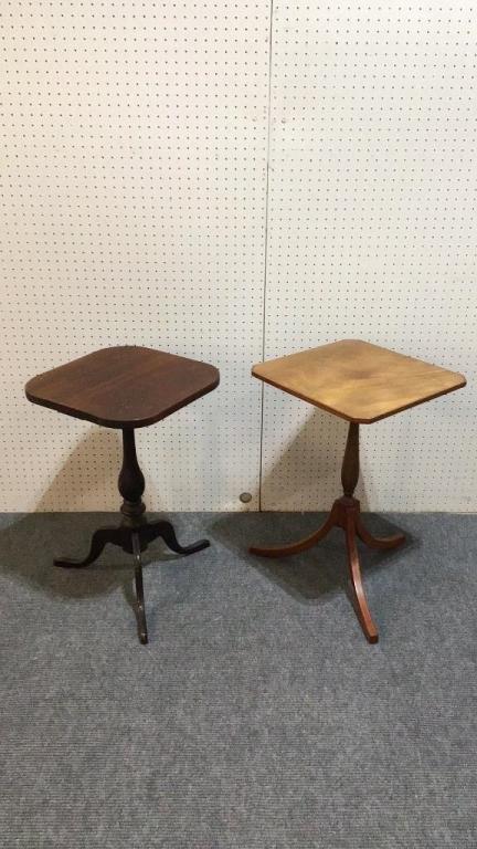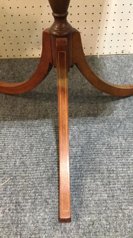 Walnut with spider base..Mahogany with string inlay..both 26 inch height.