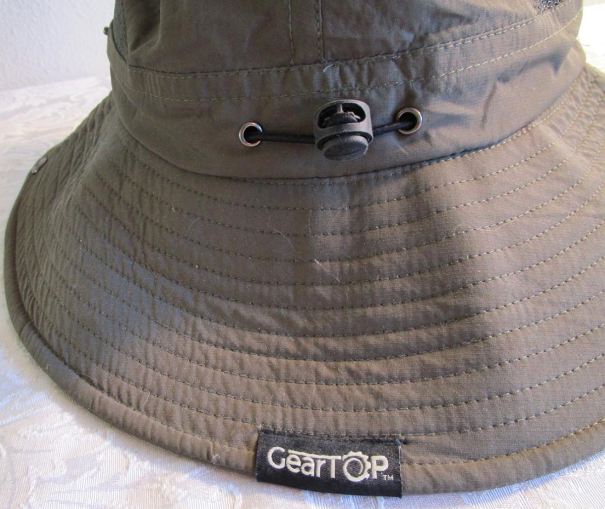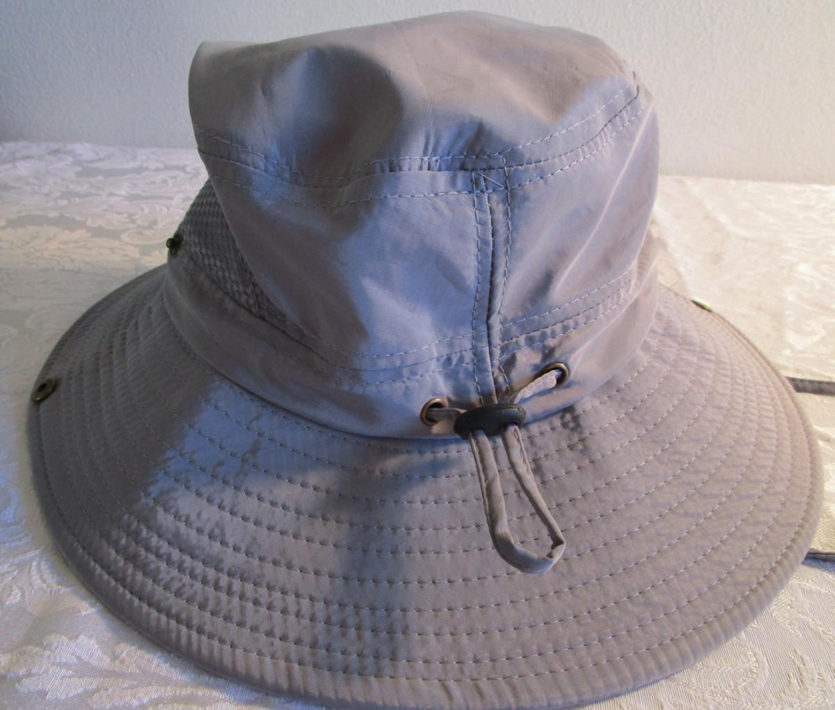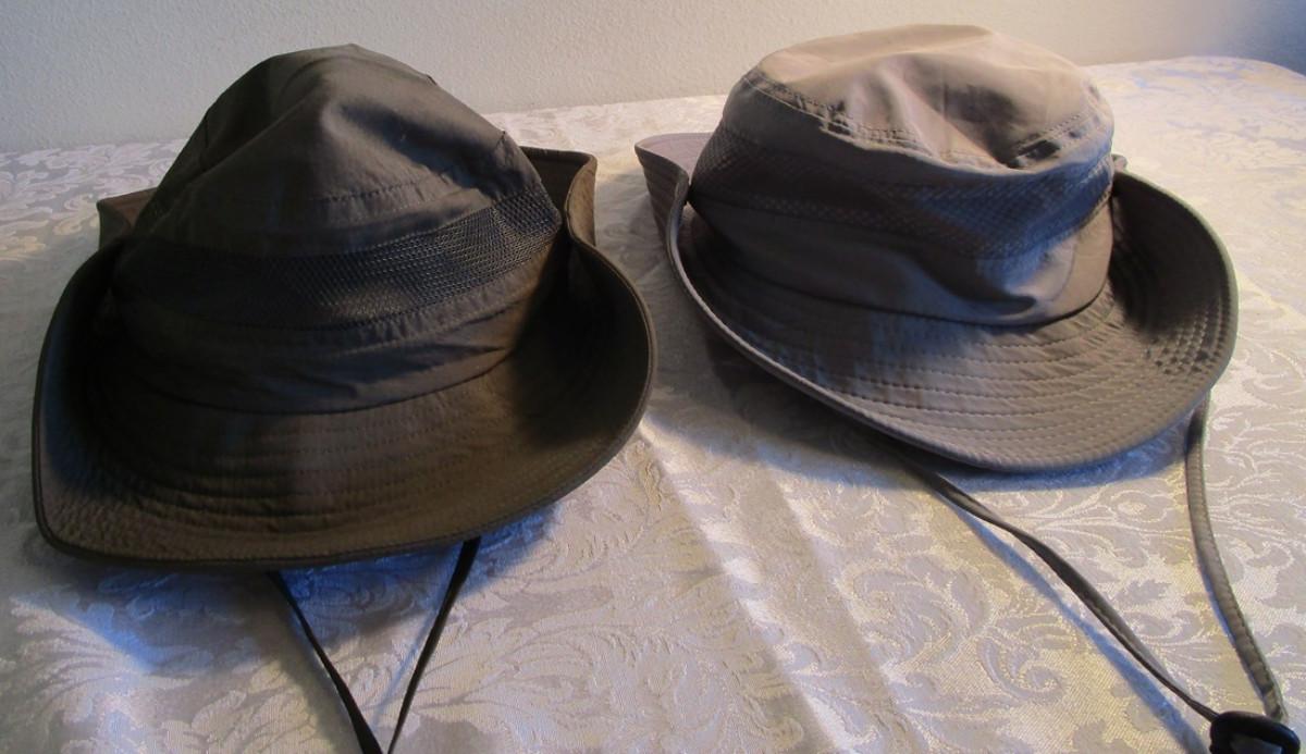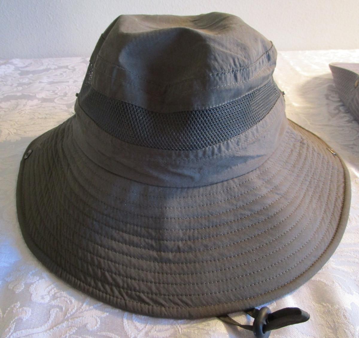 2 canvas and mesh hats, 1 khaki green, 1 gray, adjustable size