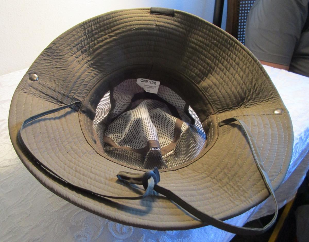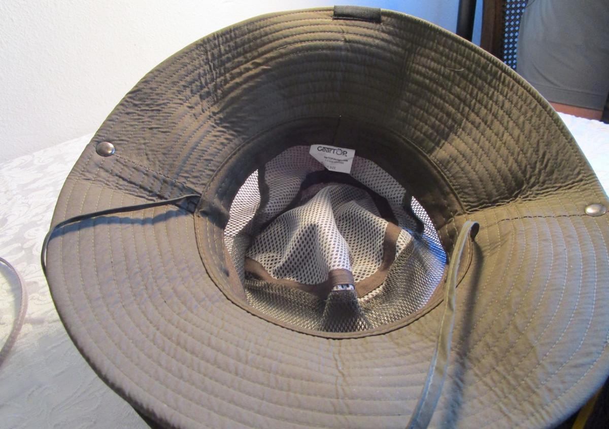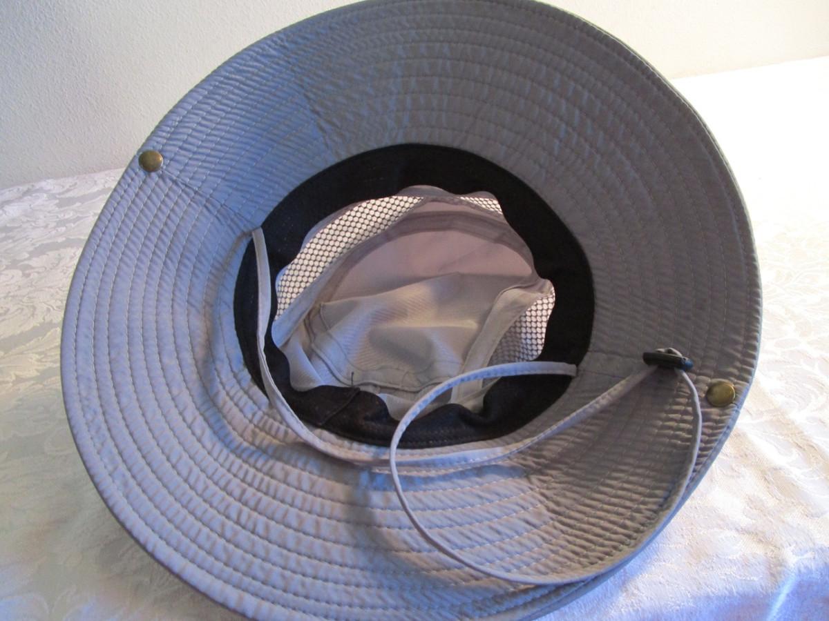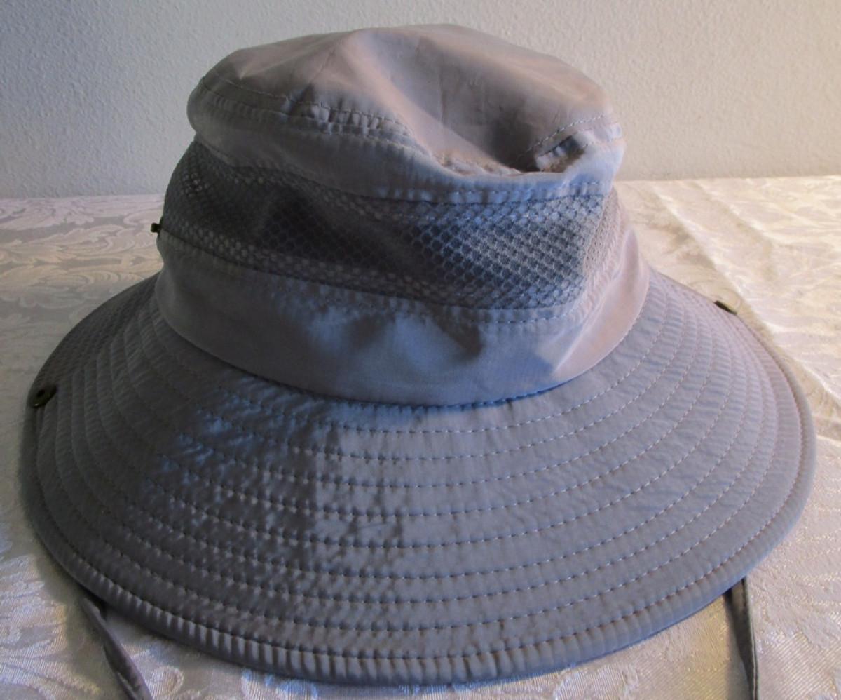 2 canvas and mesh hats, 1 khaki green, 1 gray, adjustable size