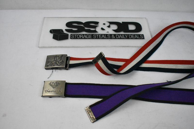 2 44" Canvas Belts: Red/White/Blue Play Cloths & Purple/Black Diamond Supply