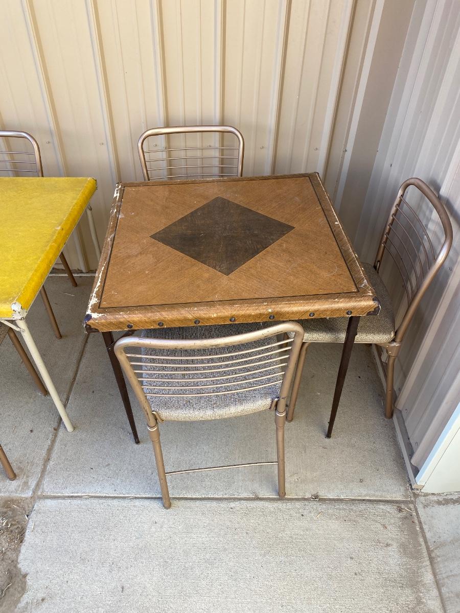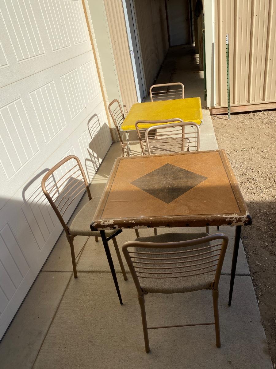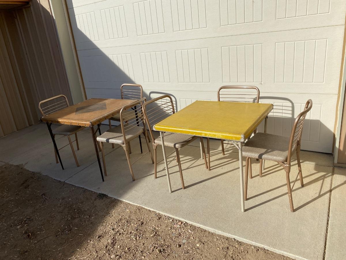 2 CARD TABLES AND 6 FOLING CHAIRS