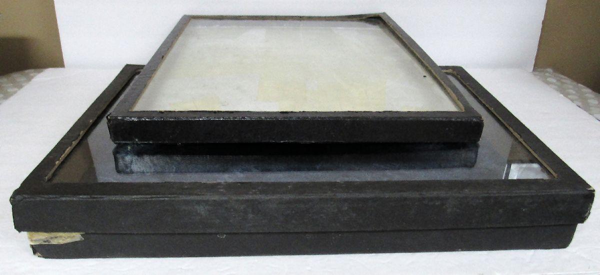 The bottom of the smaller one is all taped but is intact. Needs cleaning.