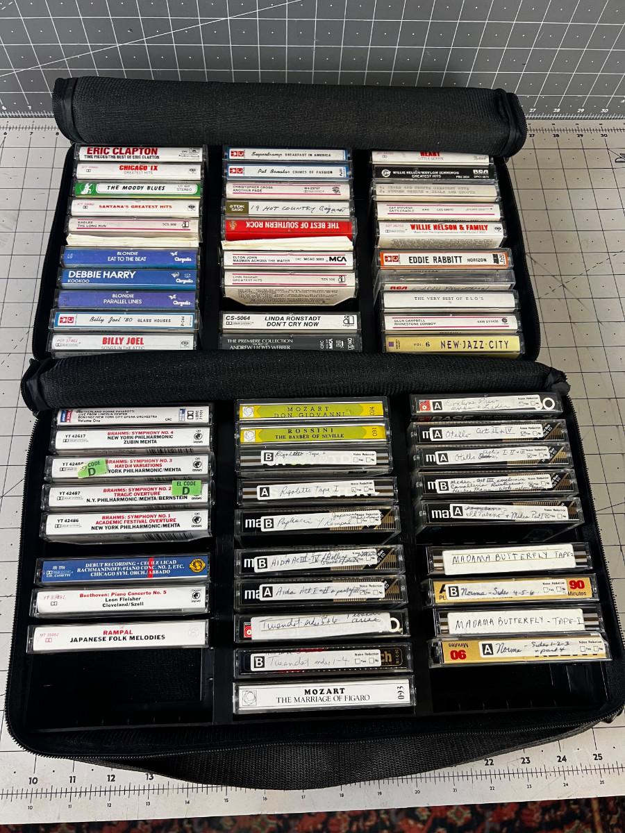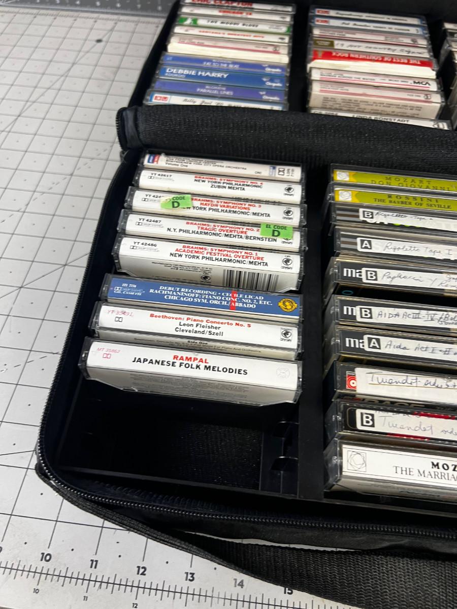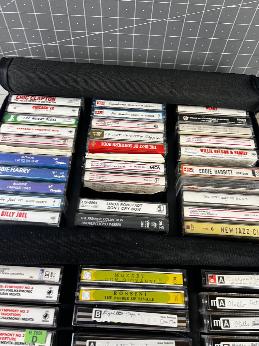 2 Cases of Cassette Tapes: Rock, Country and Classical