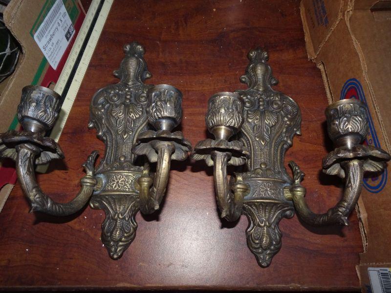 2 Cast Metal Victorian Style Candle Wall Sconces