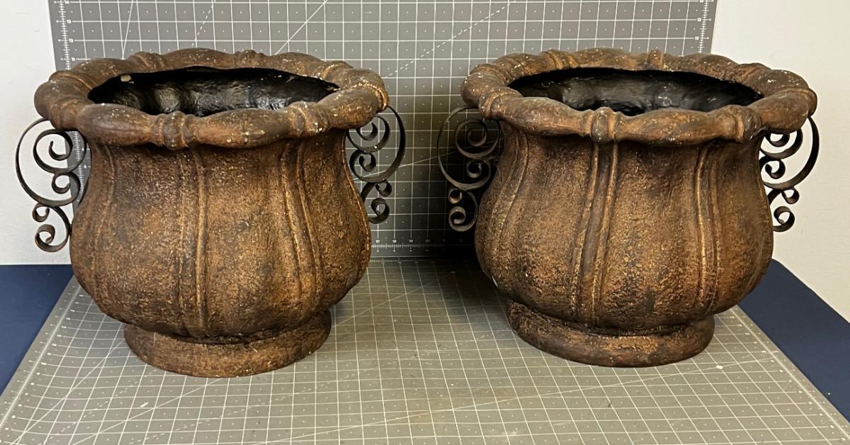 2 CAST RESIN PORCH POTS, NEW