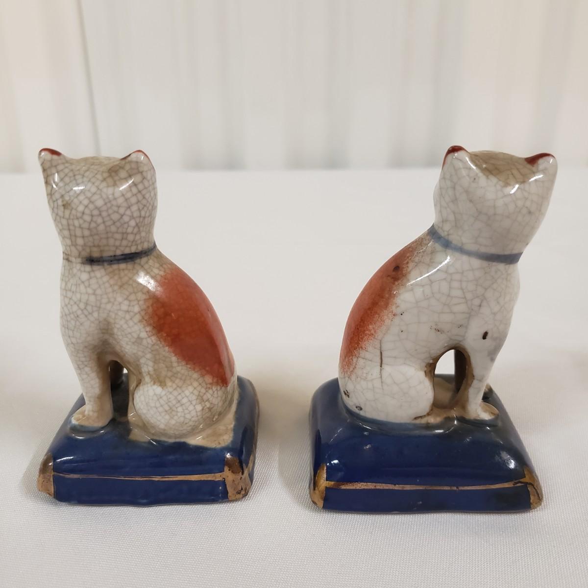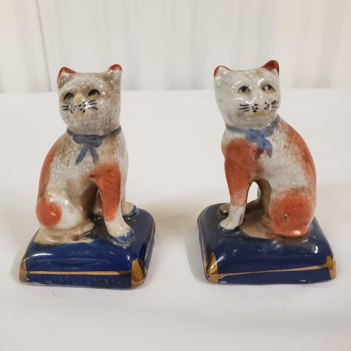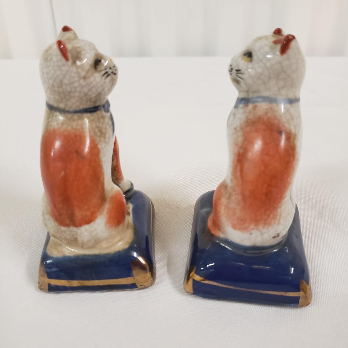This matching pair of porcelain cats are in good condition, no chips or cracks. They appear to be quite old; there are no makers marks to authenticate them.