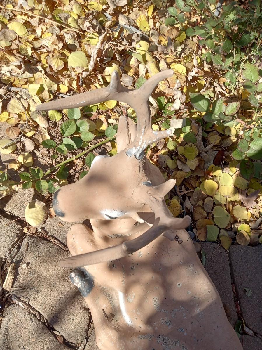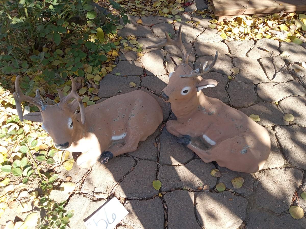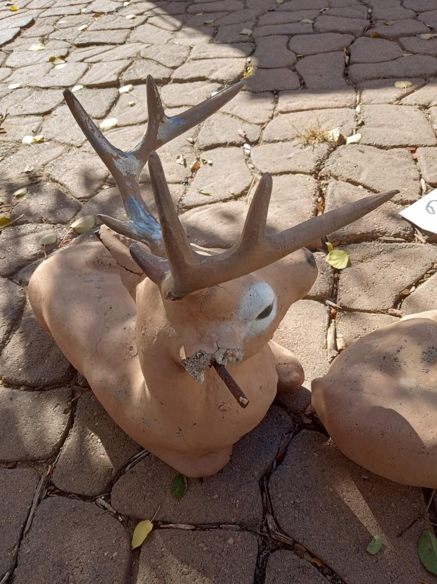 THE CEMENT IS CHIPPING OFF THEIR ANTLERS, LOSS OF PAINT AND SOME CHIPS. APPROX 16" LONG