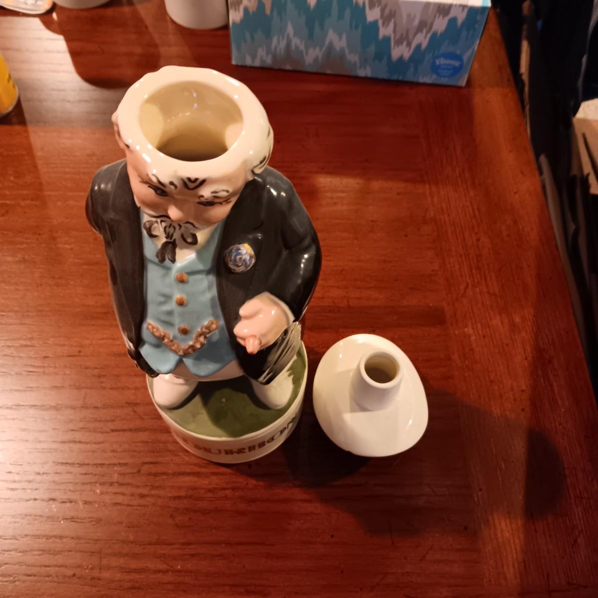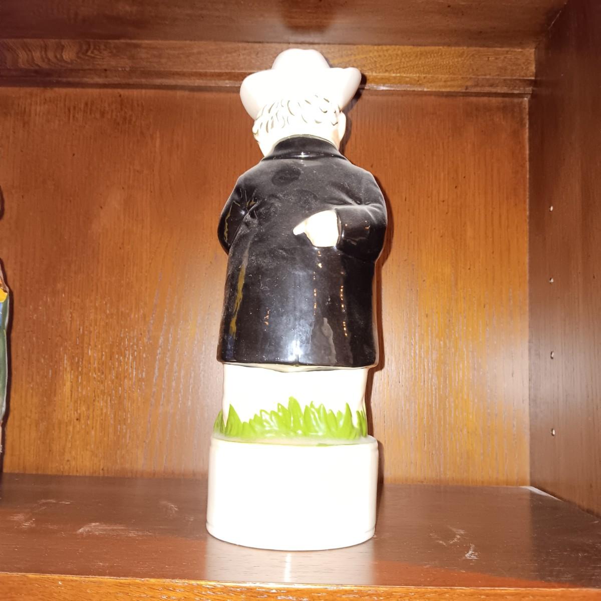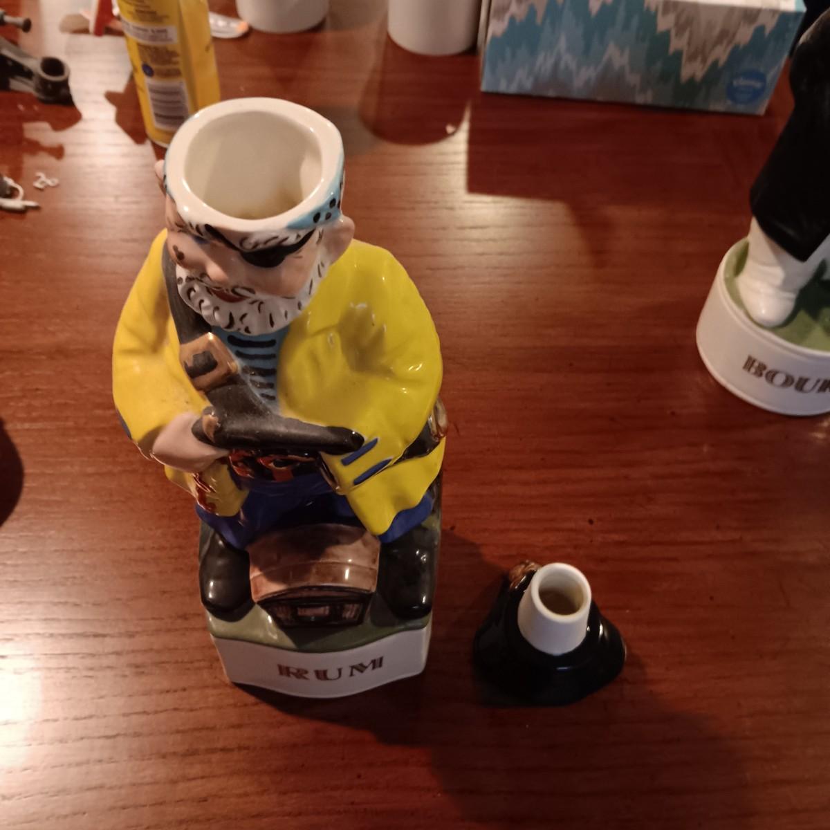 THERE IS A SMALL CHIP ON THE HAT OF 1 DECANTER