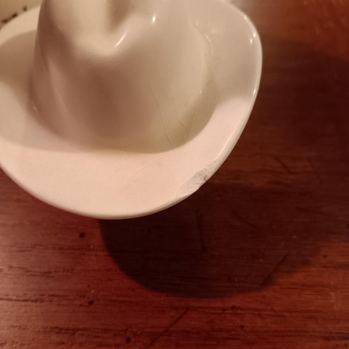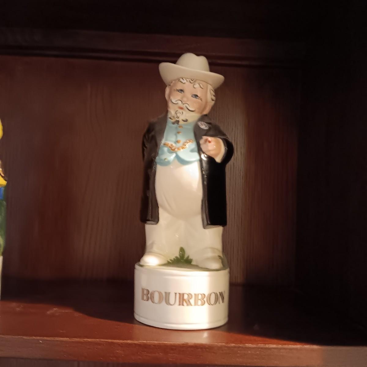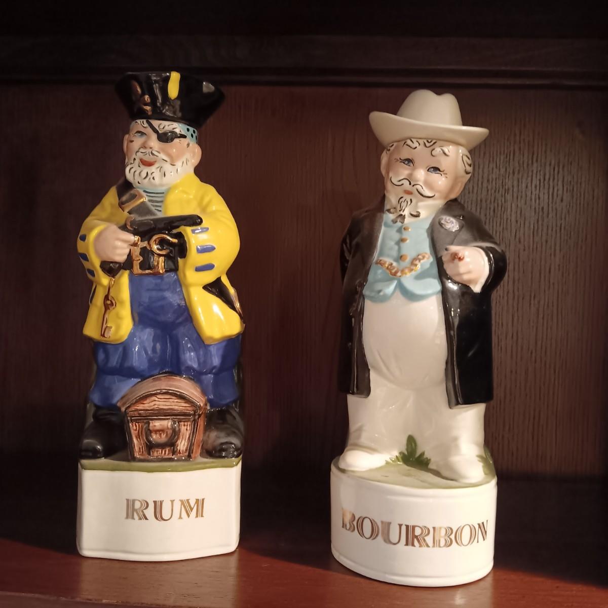 THERE IS A SMALL CHIP ON THE HAT OF 1 DECANTER
