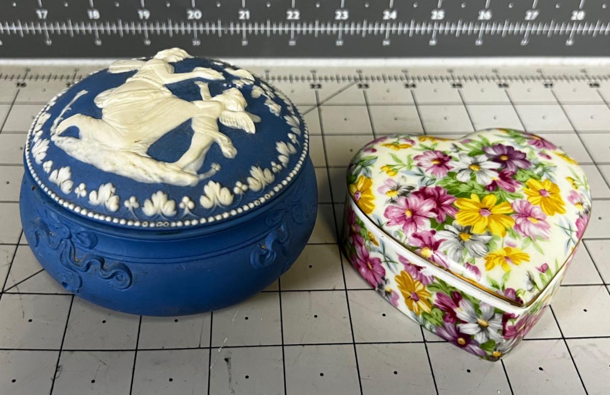 2 Ceramic Boxes; Blue Jasper and Kurt Cobain's Heart Shaped Box