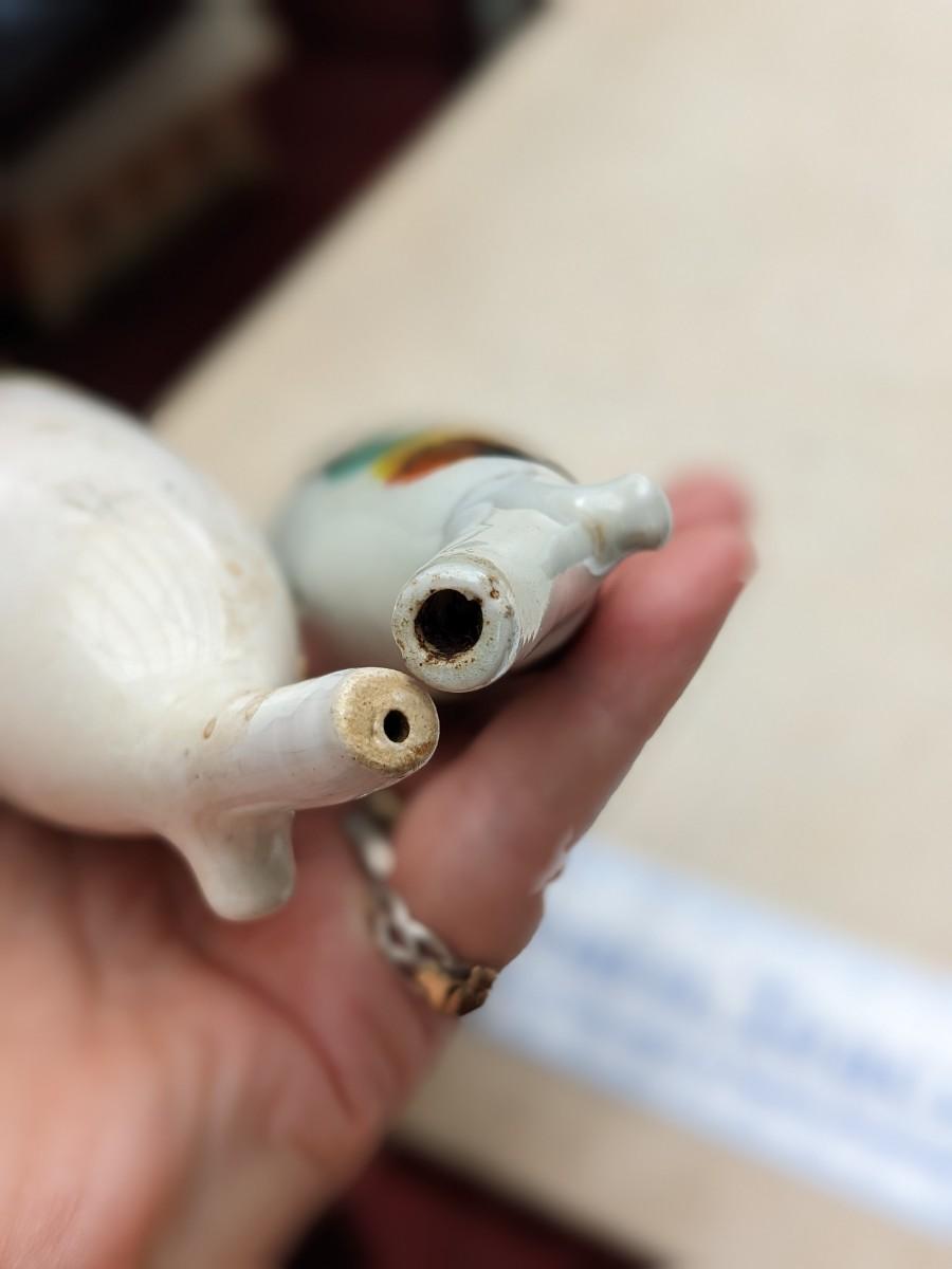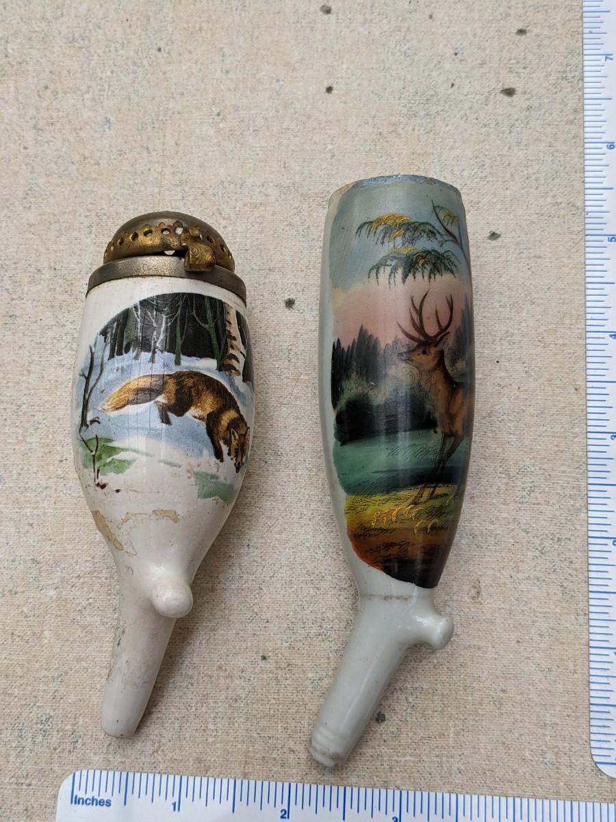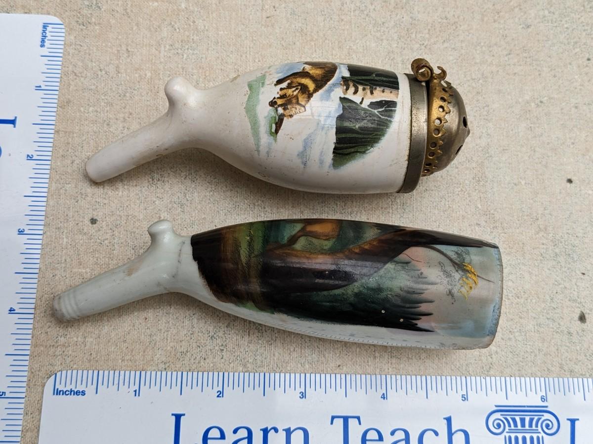 2 Ceramic Hand Painted Hunting Scene Pipe Bowls