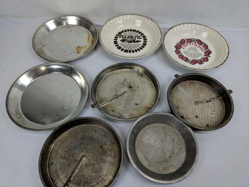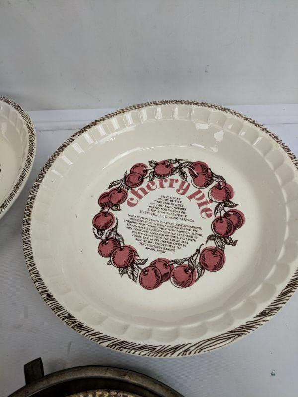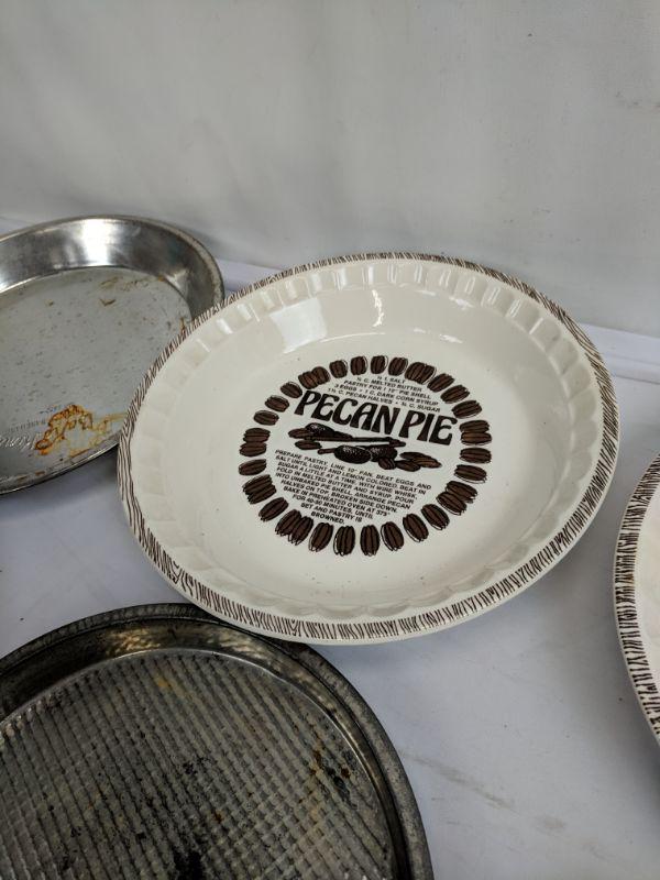 2 Ceramic Pie Dishes & 6 Metal Pie Tins, Cherry & Pecan Pie Plate