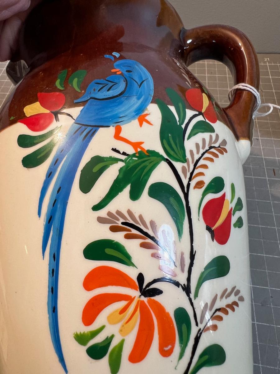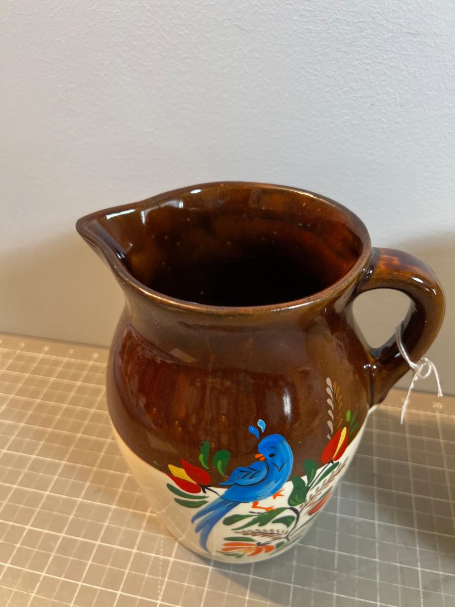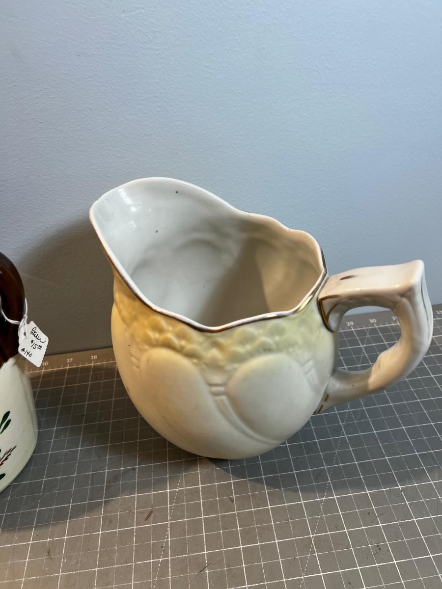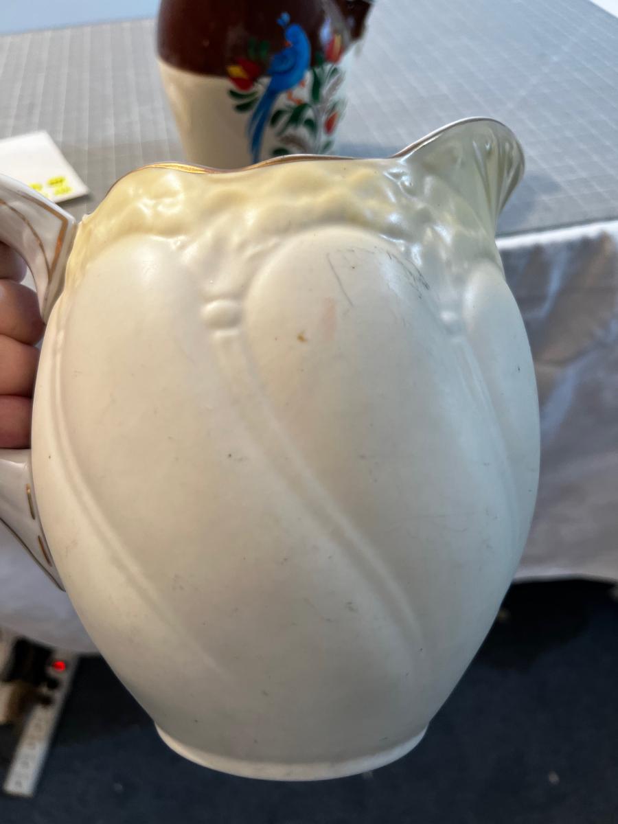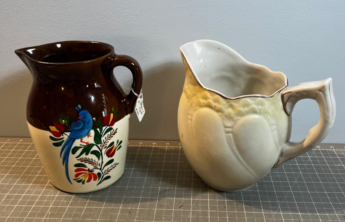 2 Ceramic Pitchers - Blue Bird and White / Yellow