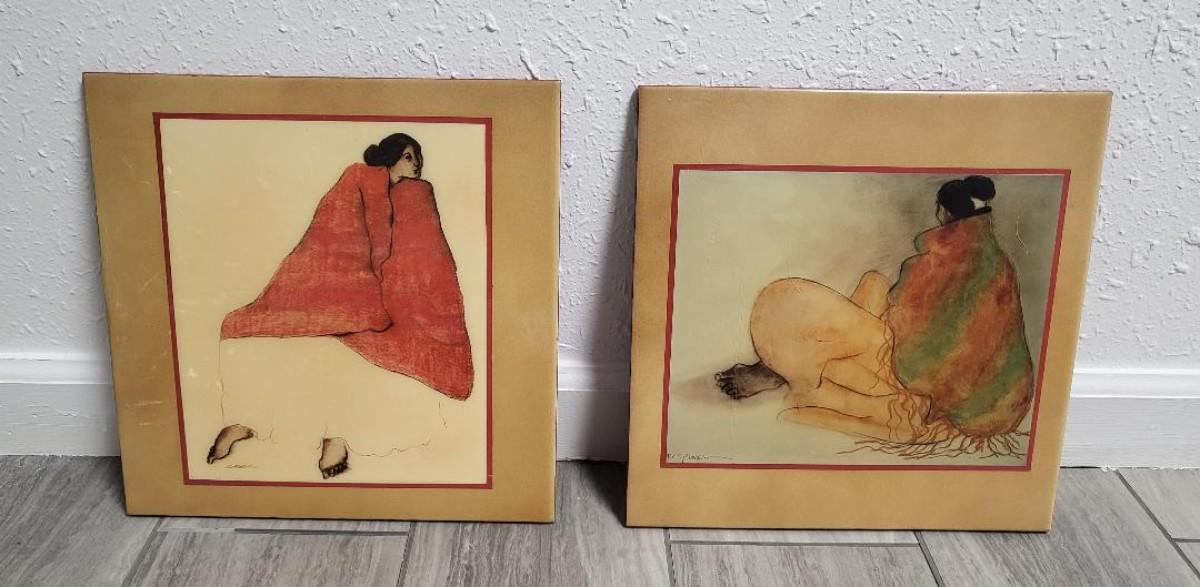 2 Vintage (1970s) RC Gorman Ceramic Tiles
