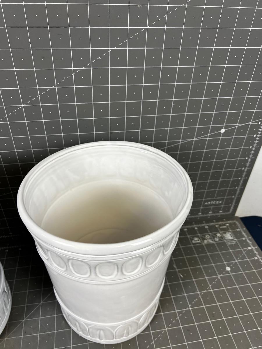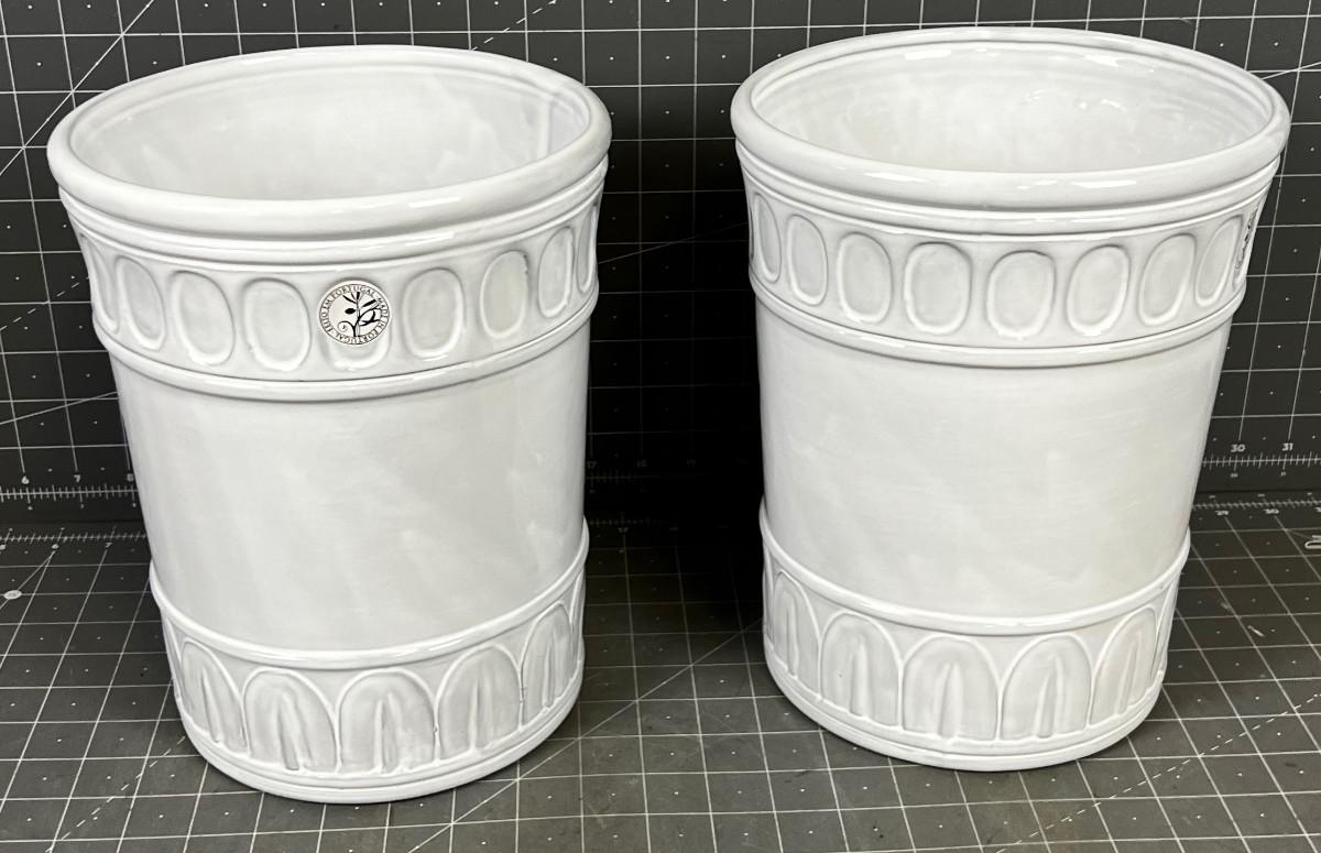2 Ceramic WHITE Porcelain Waste basket or Planters or Both.