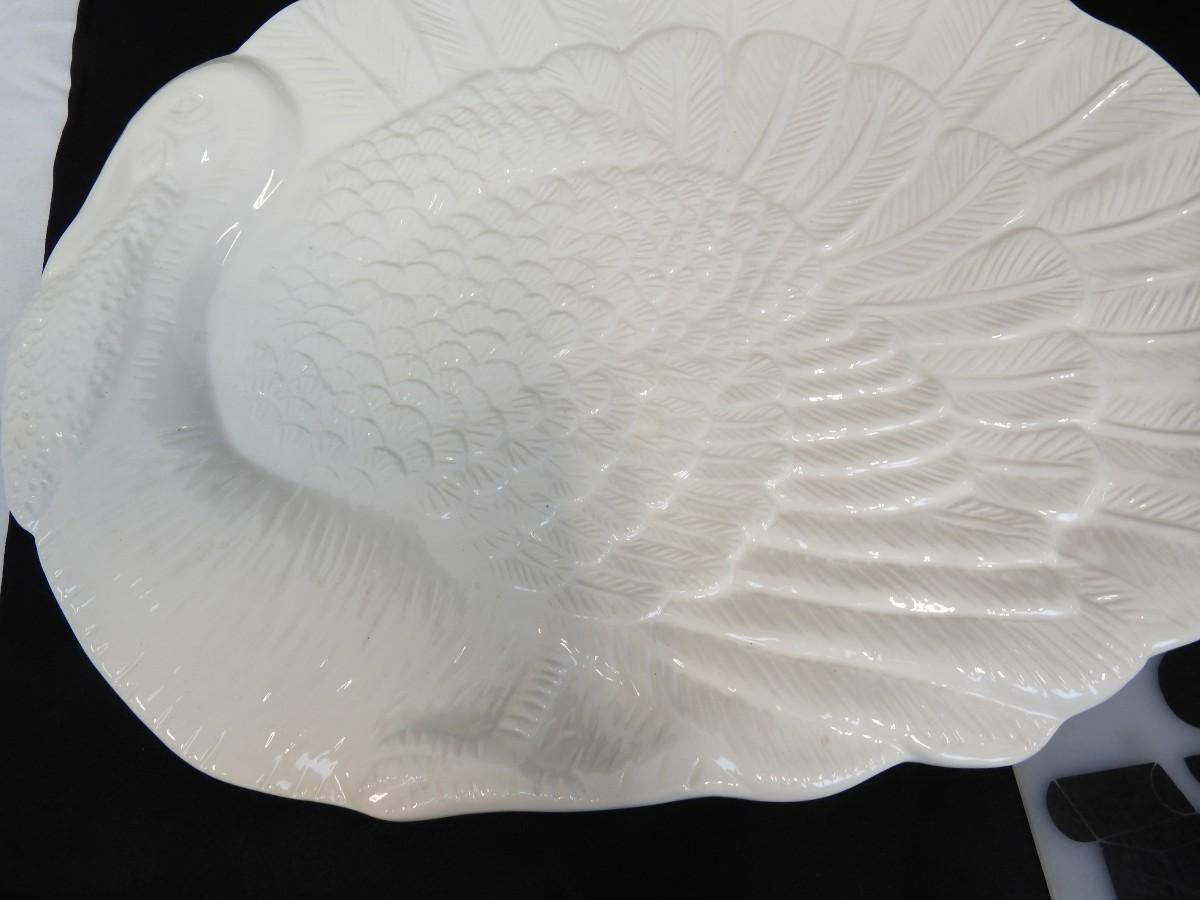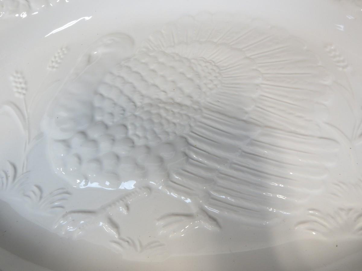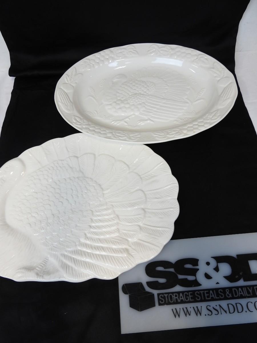 2 Ceramic White Serving Platters 13.5"x 17.5 Turkey Themed