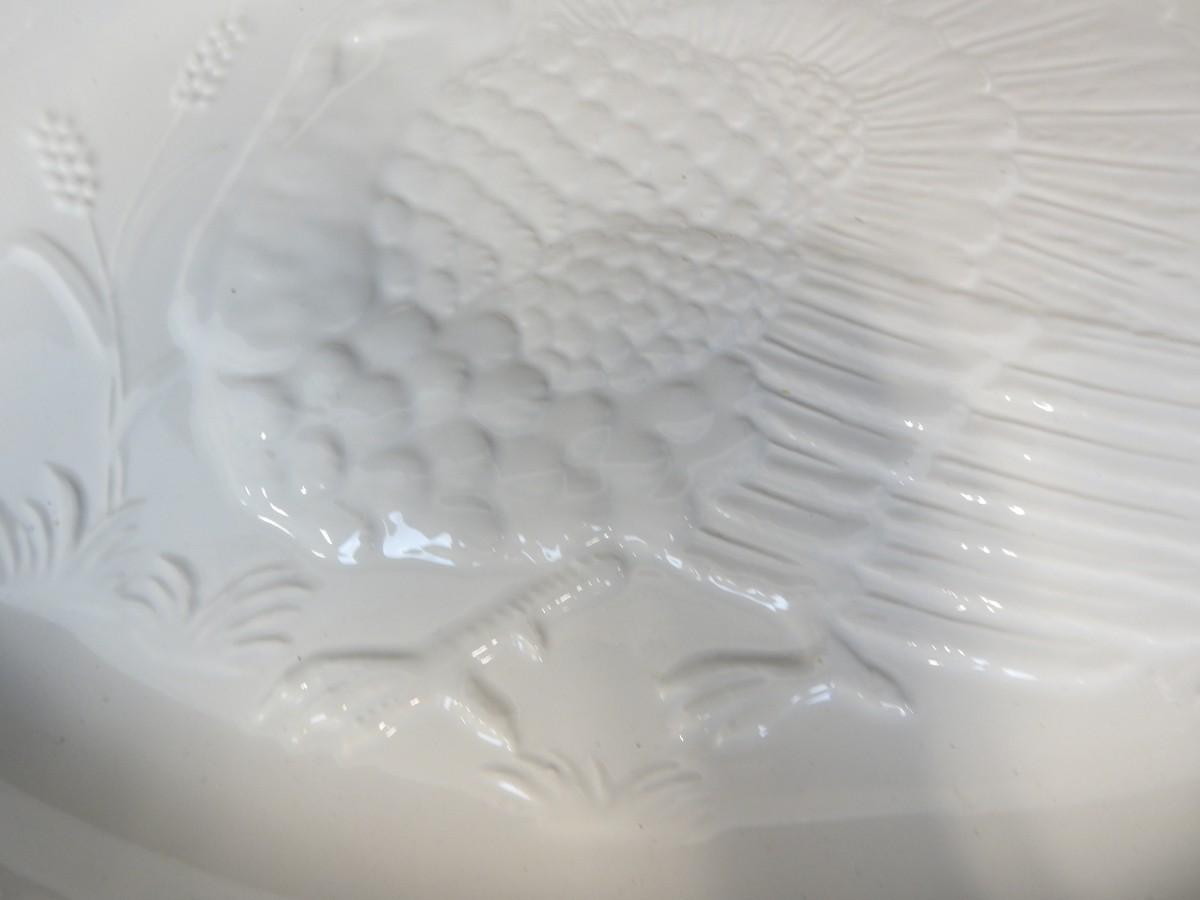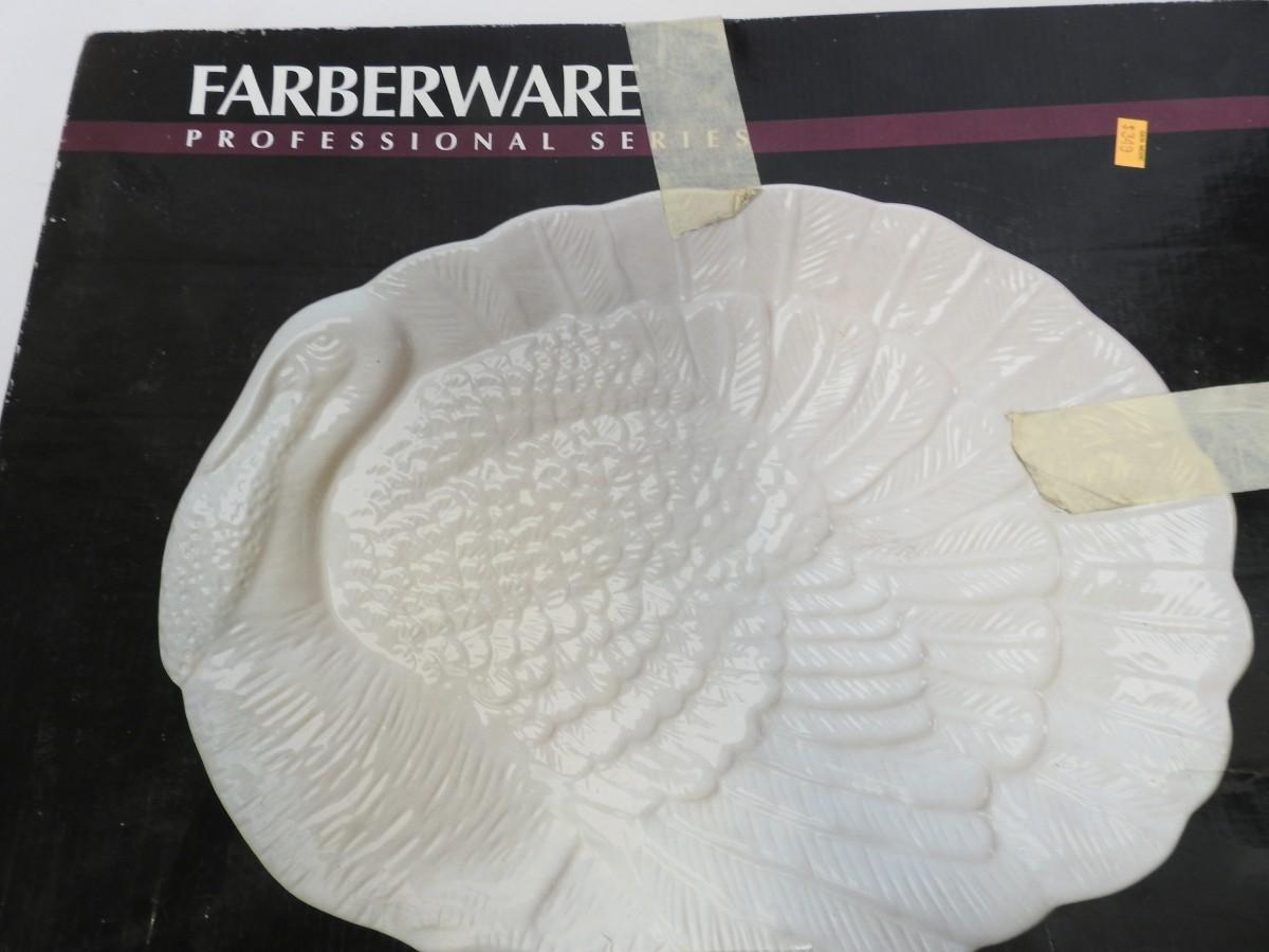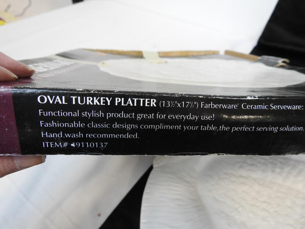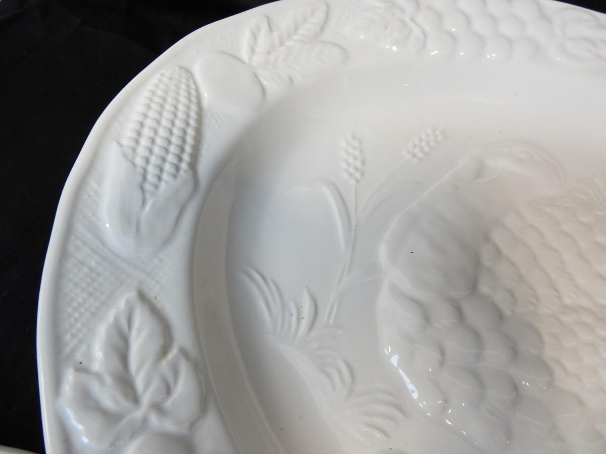 2 Ceramic White Serving Platters 13.5"x 17.5 Turkey Themed