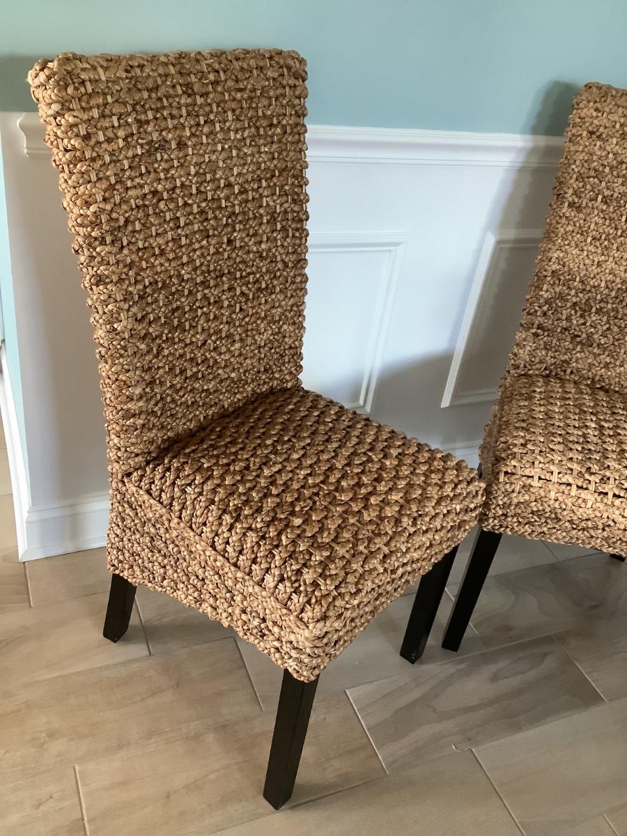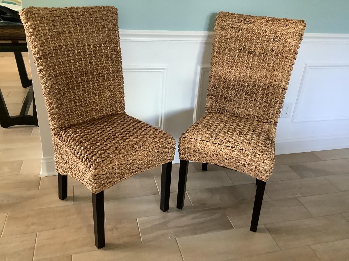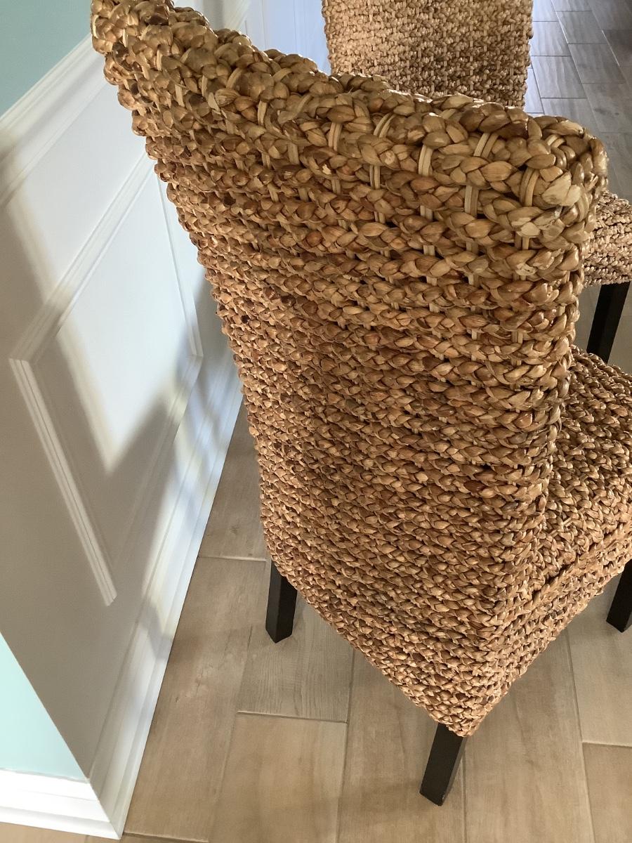 2 chairs, knotted rattan 19”seat height, 16”seat depth, 40”back, 18”W 19”depth