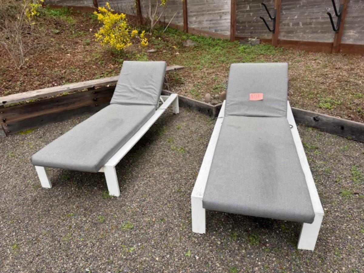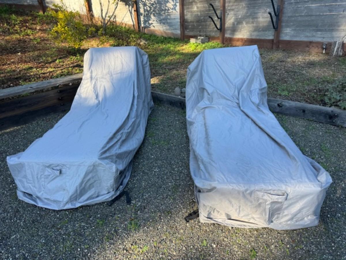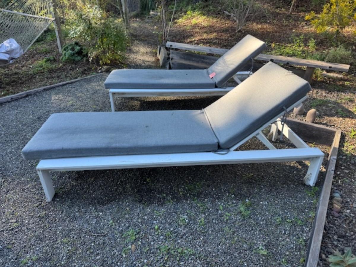 These lounge chairs offer 3 reclining options. The cushions are as is - but very comfortable. They both come with waterproof covers that need some cleaning.