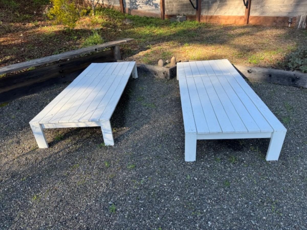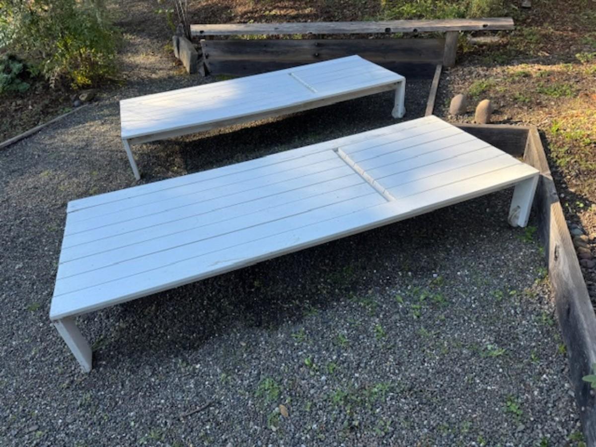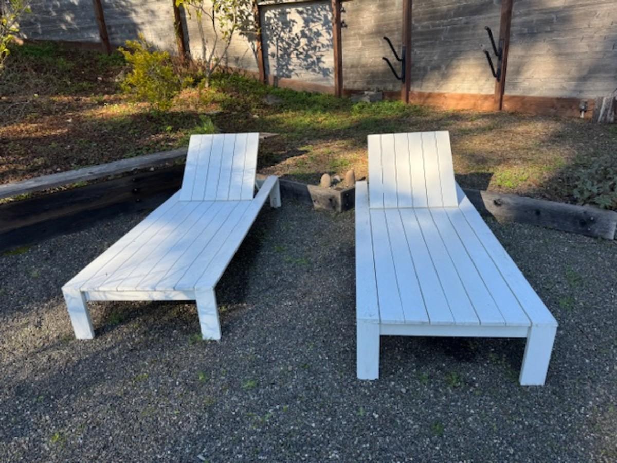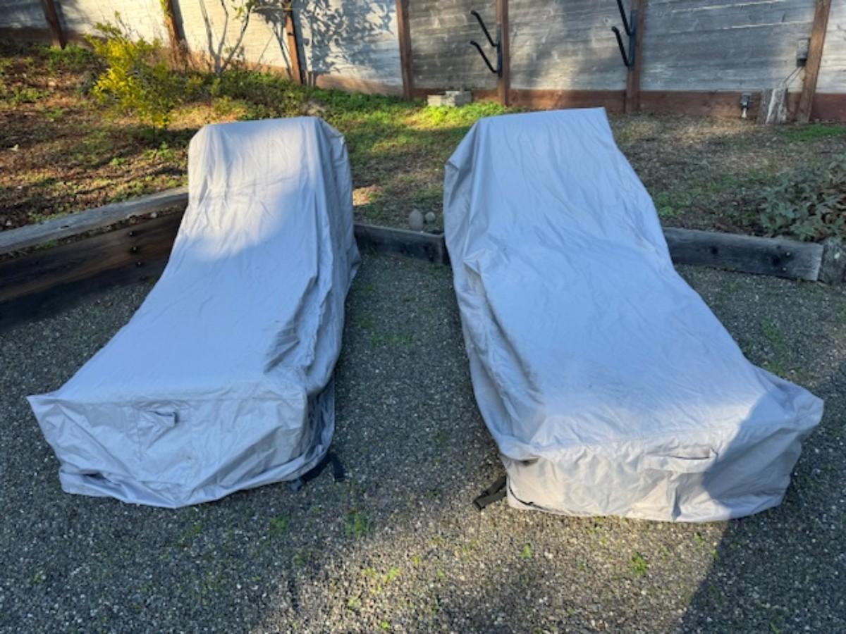 These lounge chairs offer 3 reclining options. The cushions are as is - but very comfortable. They both come with waterproof covers that need some cleaning.