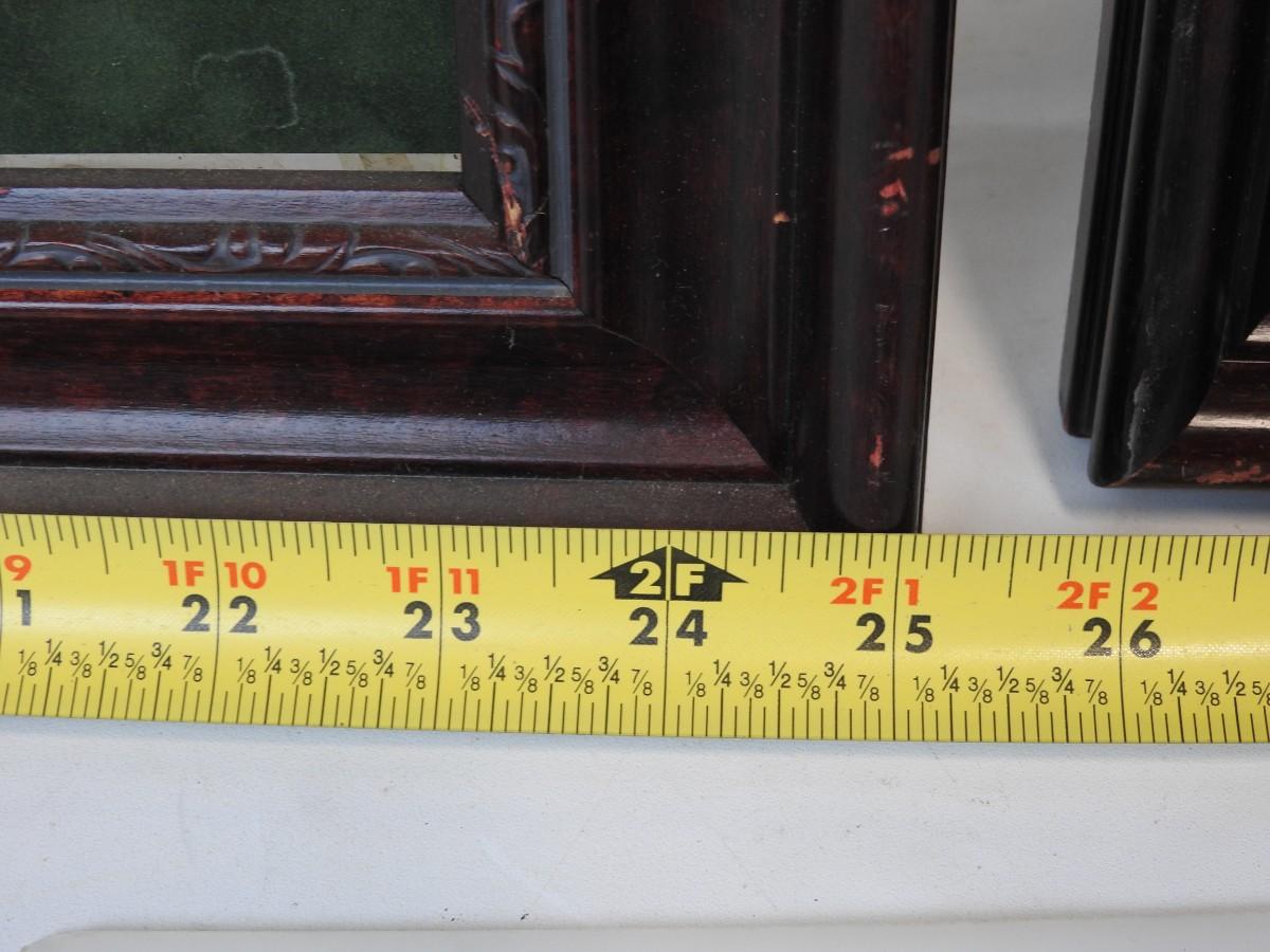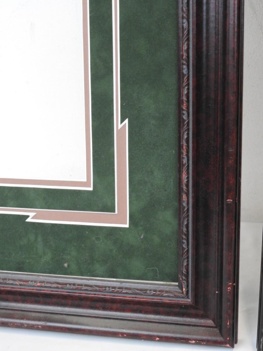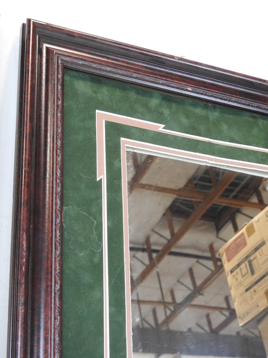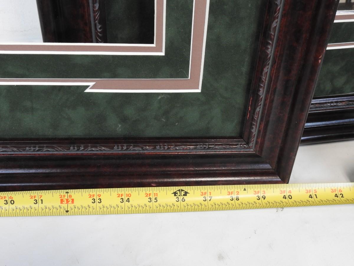 2 Cherry Wood Frames with Pink/Green Mats. 1 empty & 1 with mirror