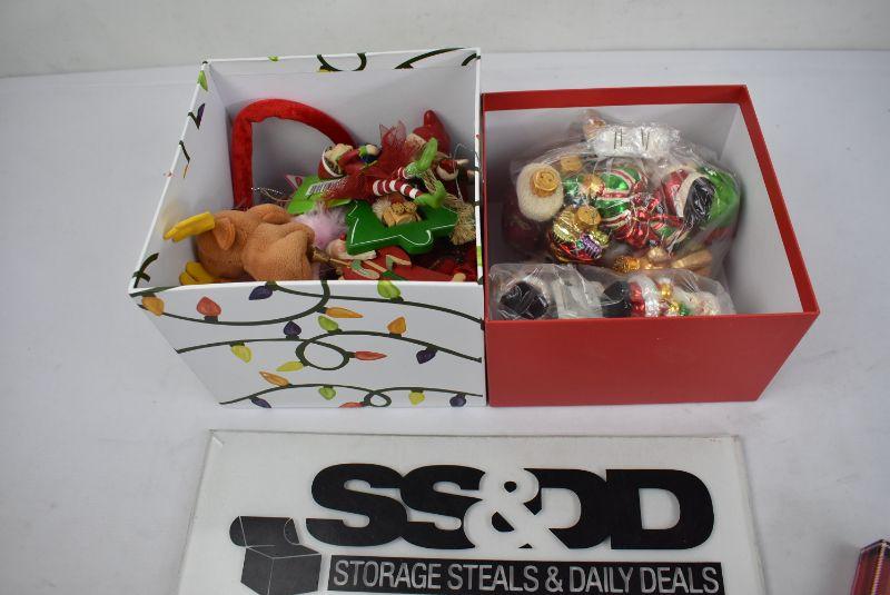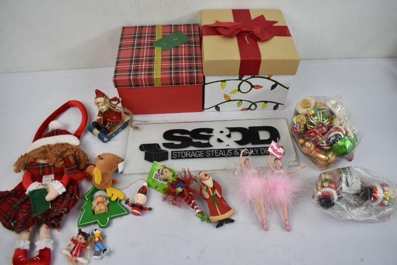 2 Christmas Boxes Full of Ornaments & Decor - Ballerinas, Elves, Christmas Purse and more!