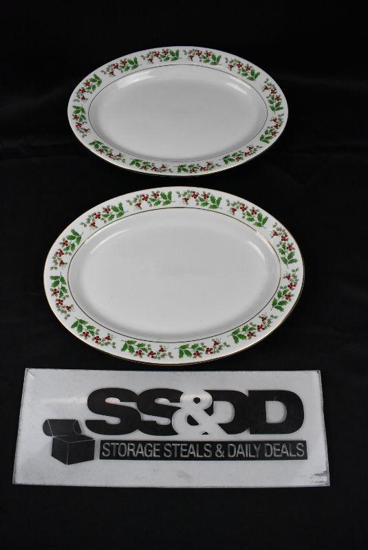 2 Christmas Plates/Platters, 9x12 Ovals by Gibson