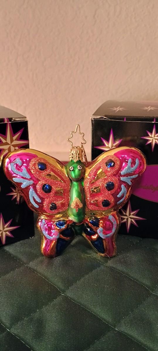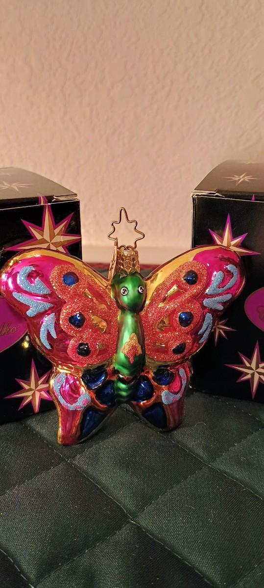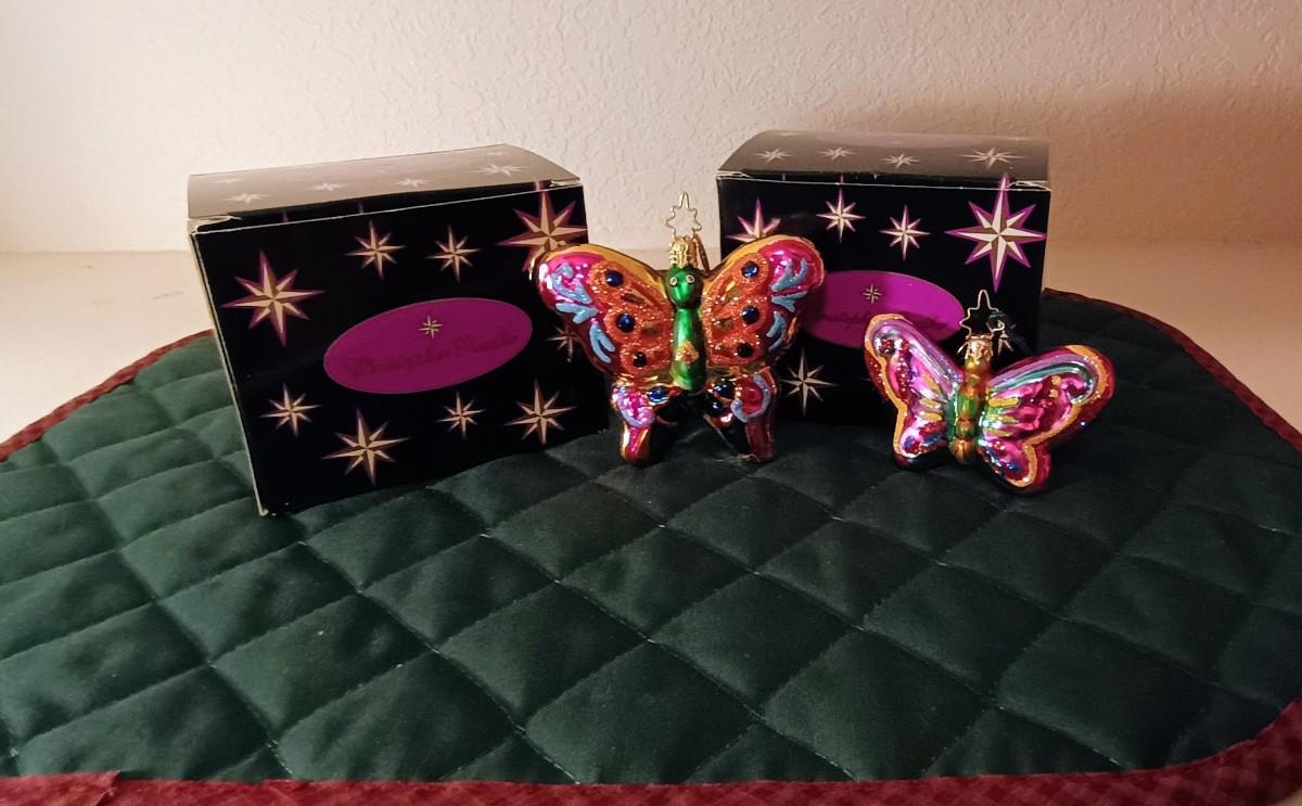 2 CHRISTOPHER RADKO BUTTERFLY ORNAMENTS