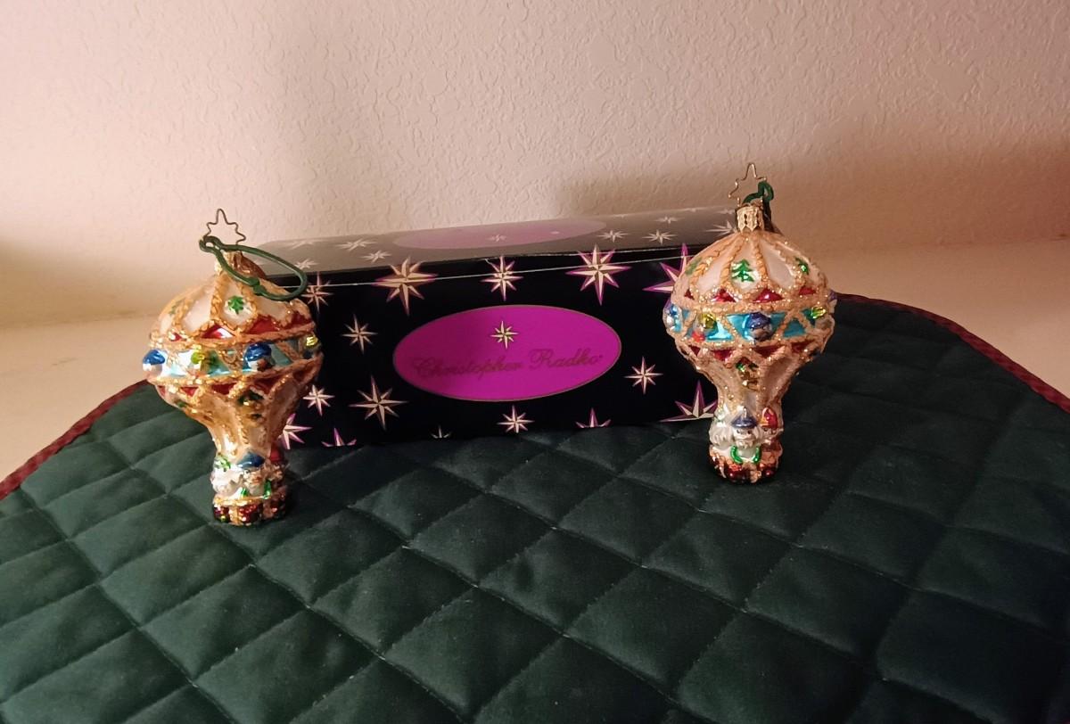 2 CHRISTOPHER RADKO HOT AIR BALLOON ORNAMENTS