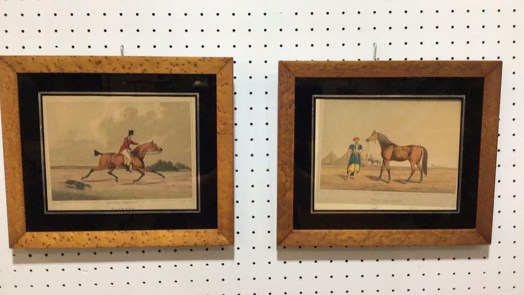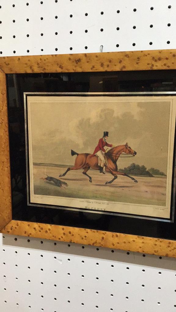 Line Item # 23 Pair of chromolithographs by Henry Alken..reissued In 1903..burlwood frames..toning to prints..