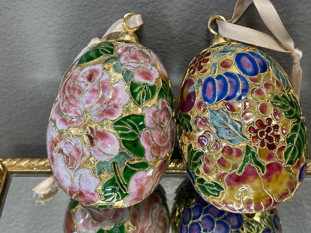 2 cloisonné egg ornaments