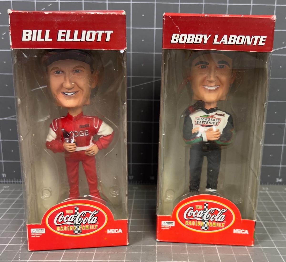 2 Coca-Cola NASCAR Bobble HEADS NEW in the Box